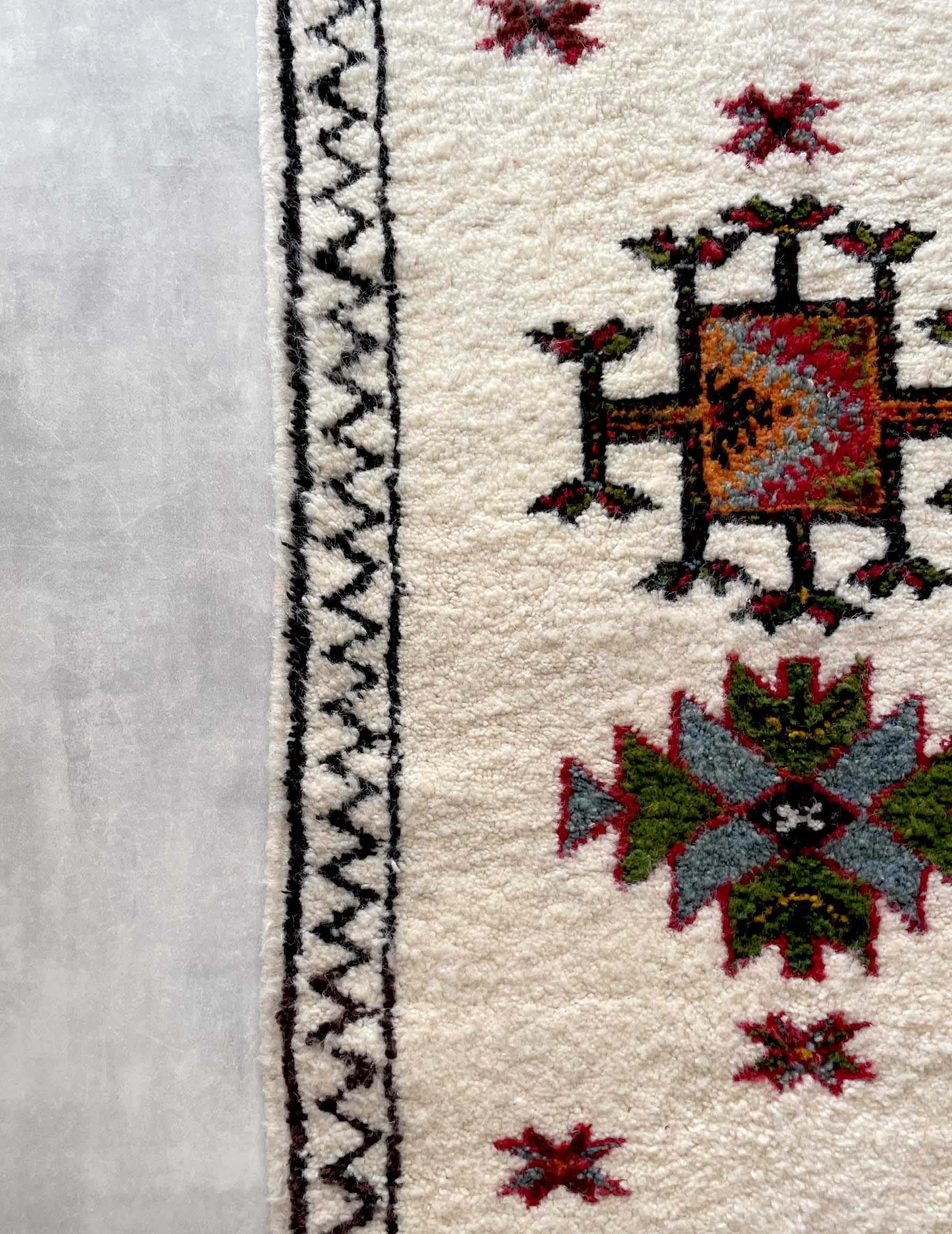モロッコの南に位置する、サハラのベルベル人女性によりウールで丁寧に編まれた平織タイプのラグ。