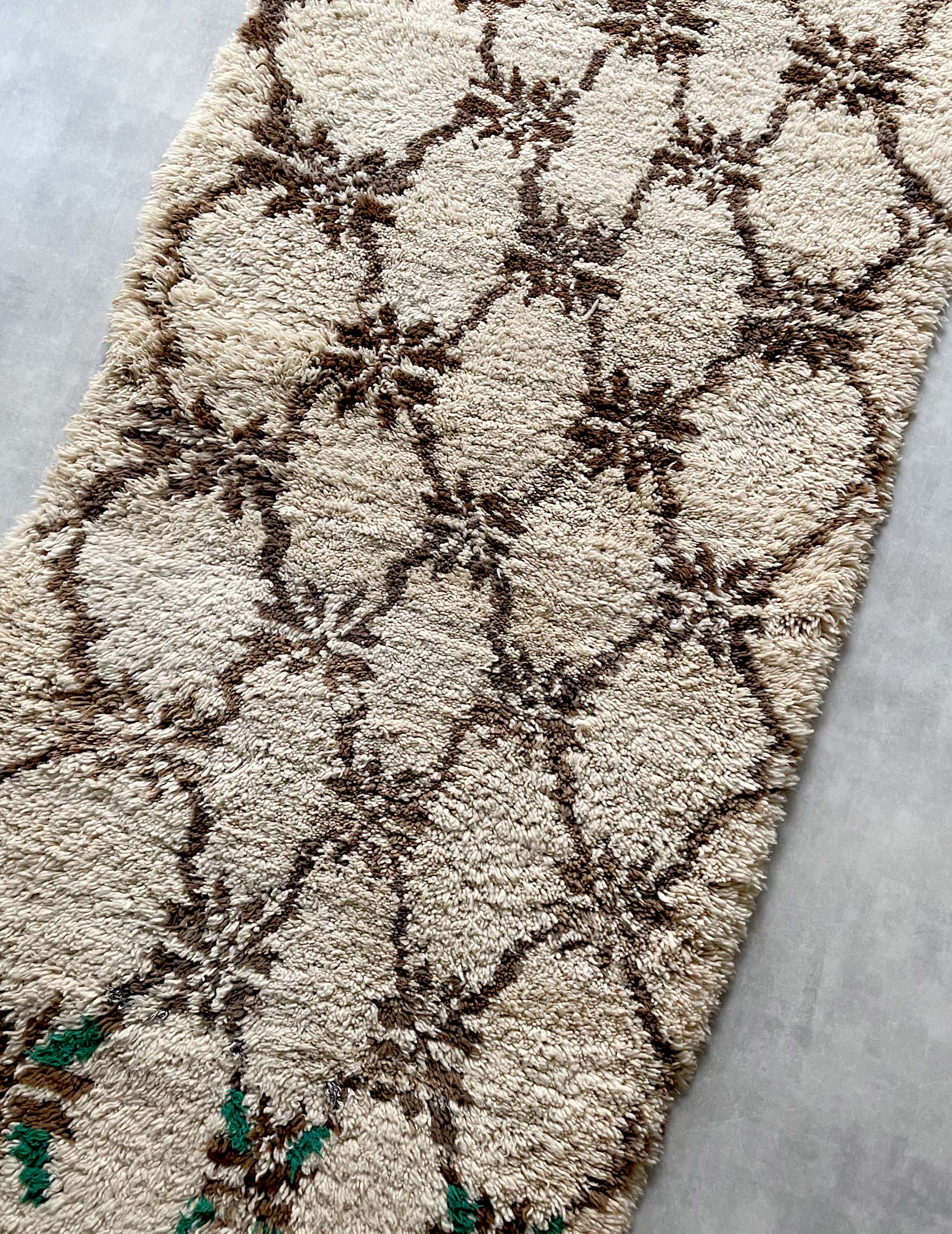 全てベルベル人女性により織られたハンドメイドのラグで、同じ物は1つとしてありません。織り目が詰まっていないため季節を問わずご使用いただけます。