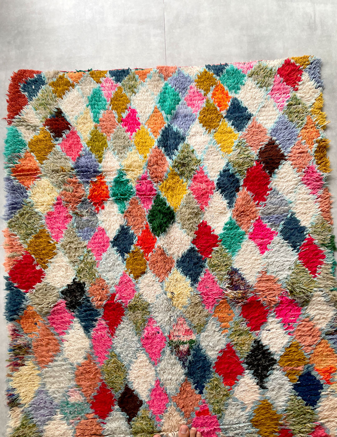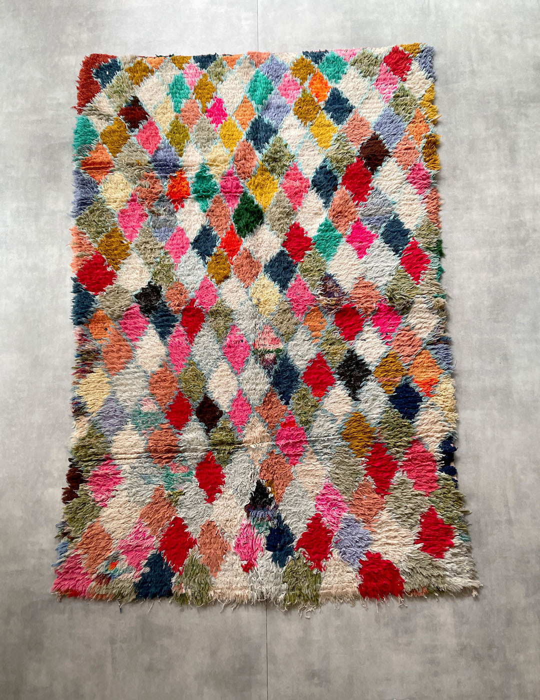 全てベルベル人女性により織られたハンドメイドのラグで、同じ物は1つとしてありません。織り目が詰まっていないため季節を問わずご使用いただけます。