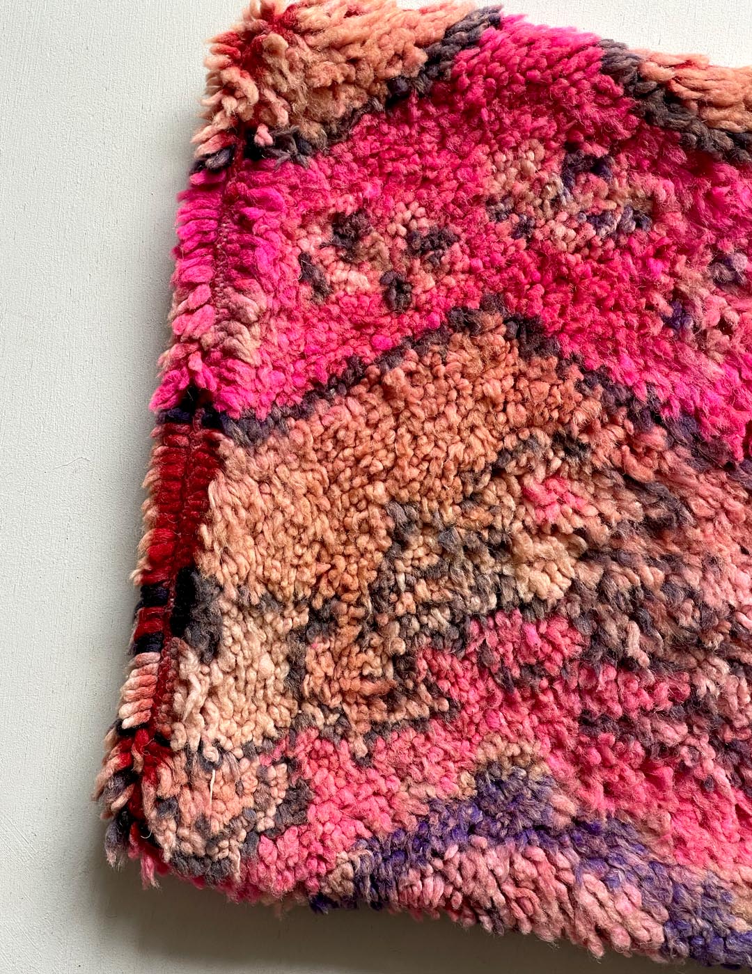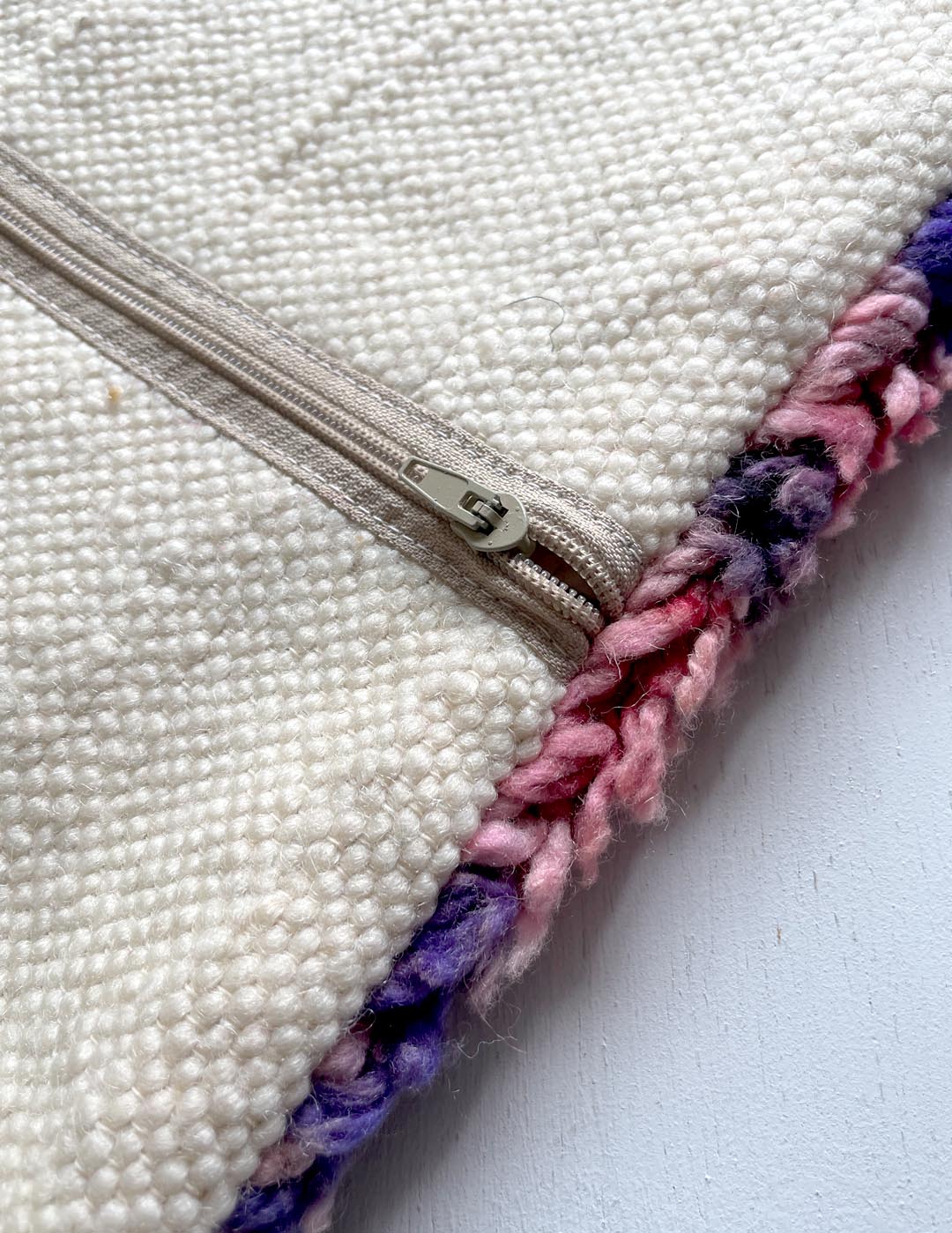 ベルベル人女性により織られたハンドメイドのラグを使用したウールのクッションカバーです。