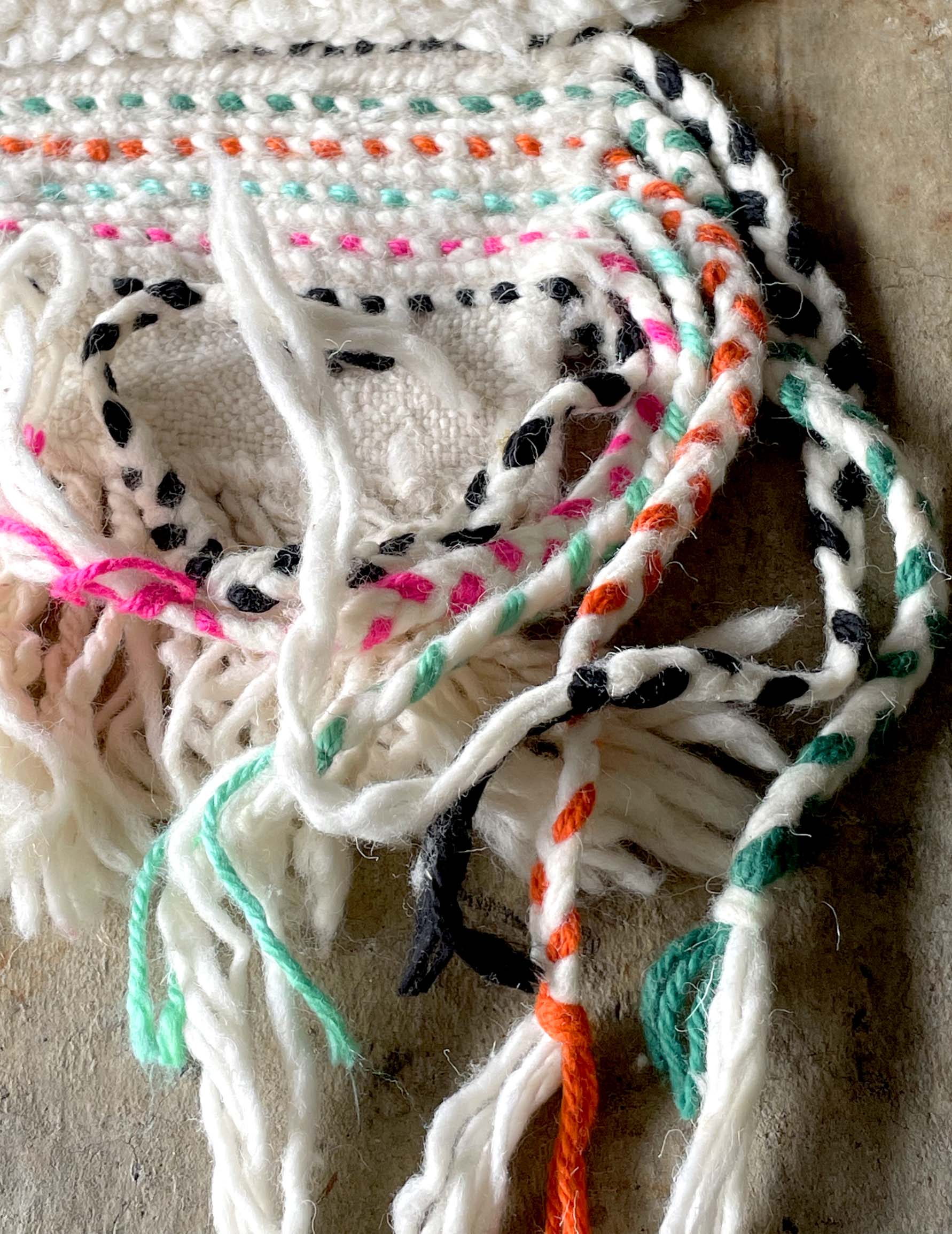 ・生産の性質上、ウールに他の色や植物の繊維が混じっている場合があります。検品の際に、除去できるものは取り除いていますが、手作業なので多少残っている場合がありますのでご了承ください。またピンセットを使うとラグを傷めずに取り除くことができます。
