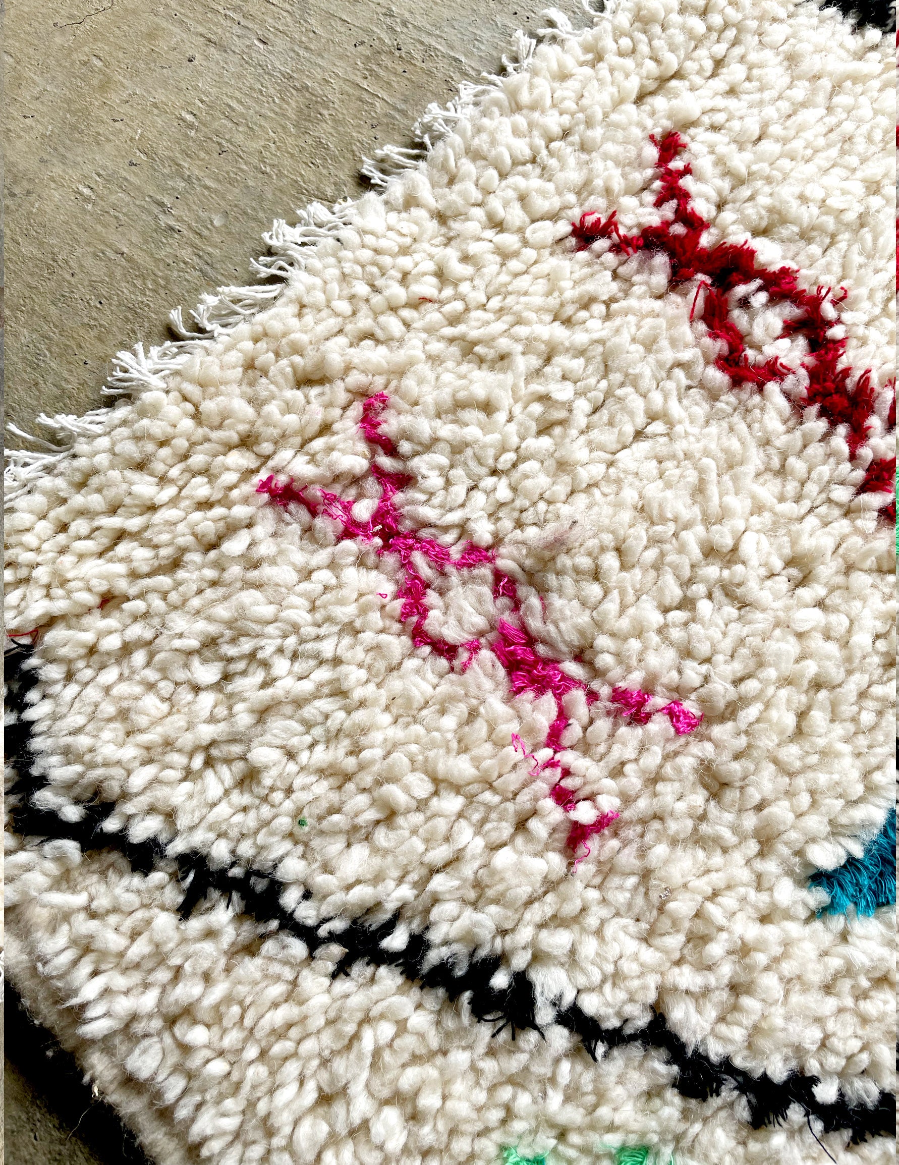 アジラルラグはモロッコのアトラス山脈に住むベルベル人女性によって、上質なウールを用いて1枚1枚丁寧に編み込まれたモロッカンラグです。