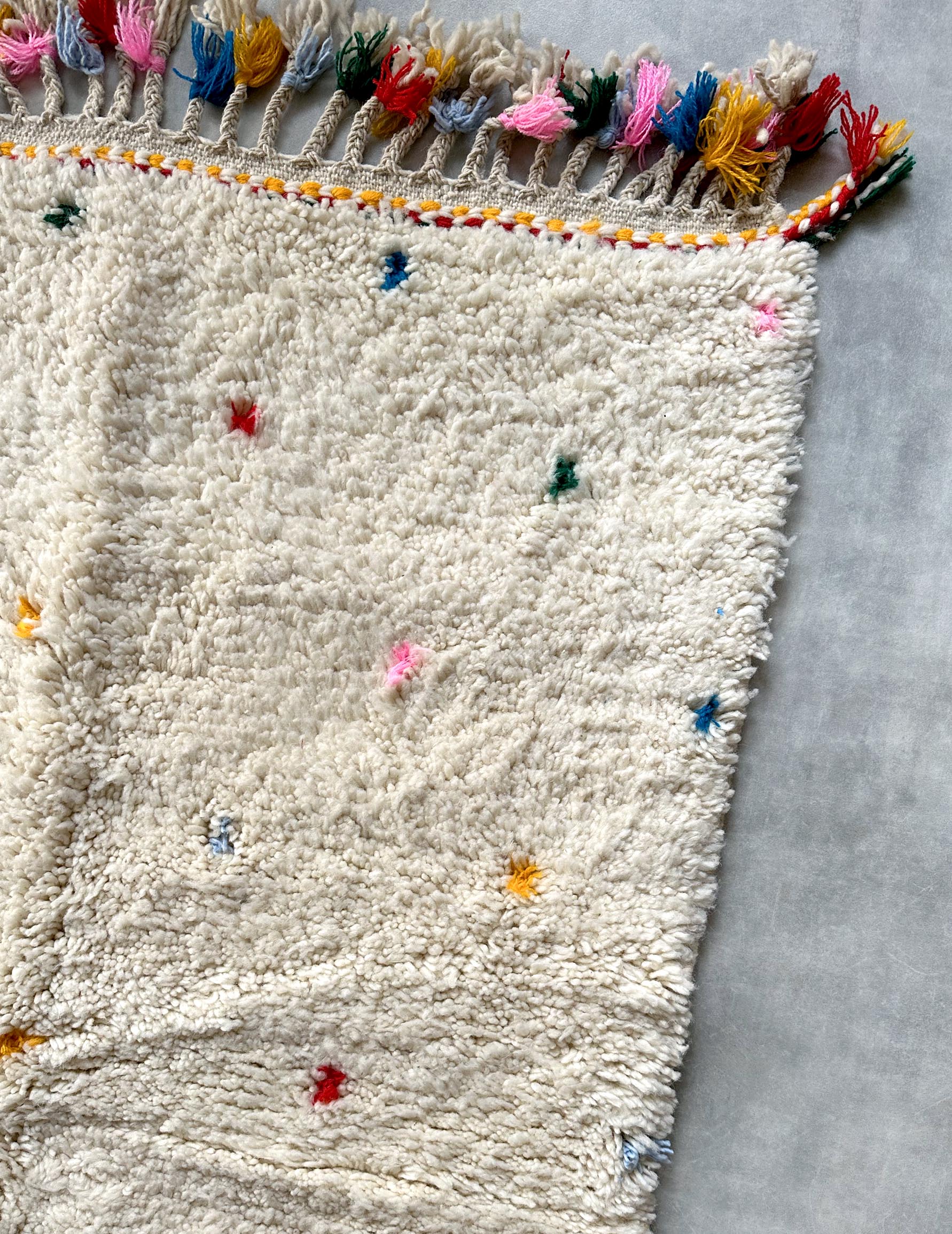 ・生産の性質上、ウールに他の色や植物の繊維が混じっている場合があります。検品の際に、除去できるものは取り除いていますが、手作業なので多少残っている場合がありますのでご了承ください。またピンセットを使うとラグを傷めずに取り除くことができます。