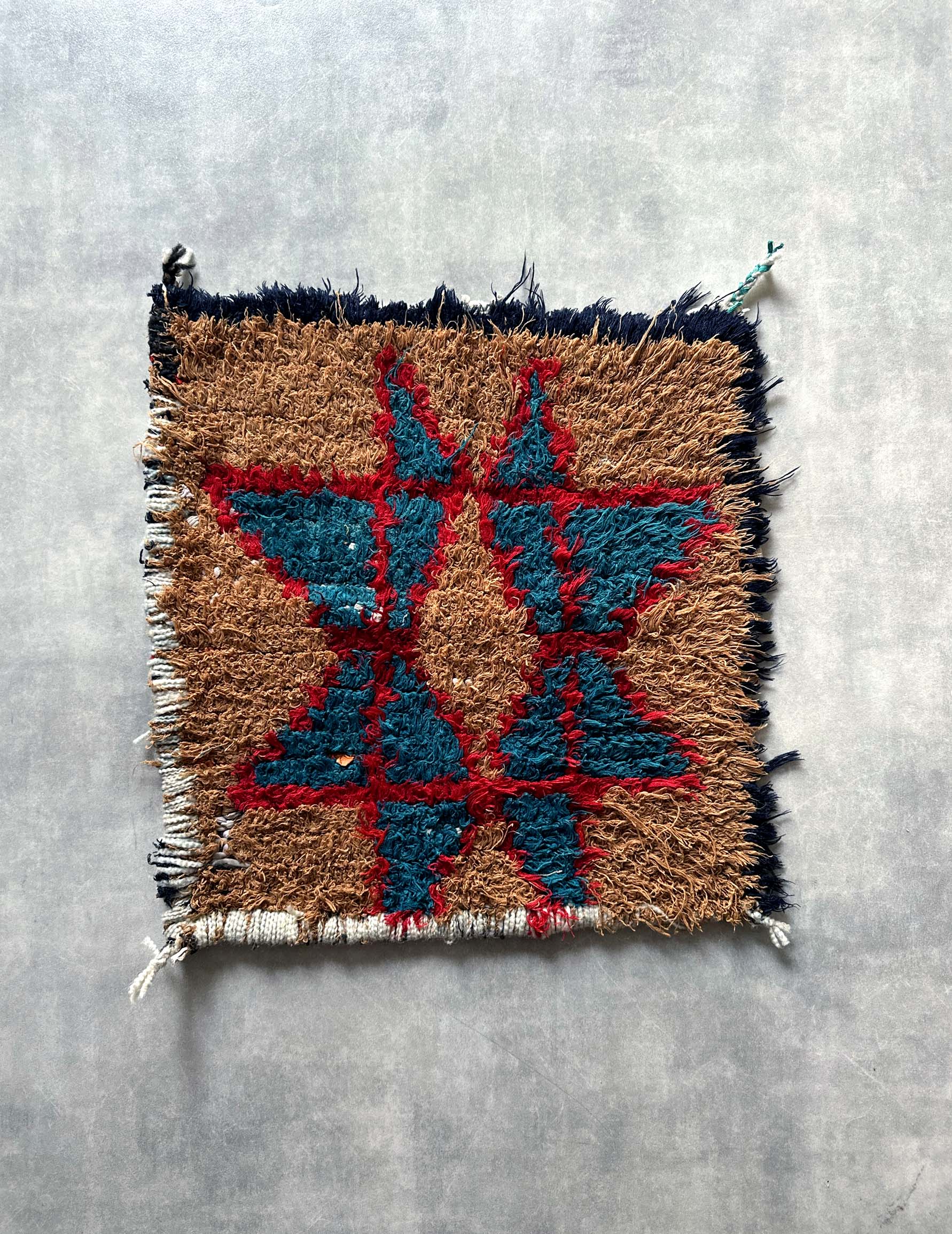 Bosharwit is a recycled Moroccan rug woven from torn clothes and other fabrics by Berber women living in the Atlas Mountains. Because they are all made from different fabrics, the color schemes and lengths vary, making each piece one-of-a-kind. In Morocco, rugs are not only used as rugs, but are also incorporated into daily life as decorative art on walls.