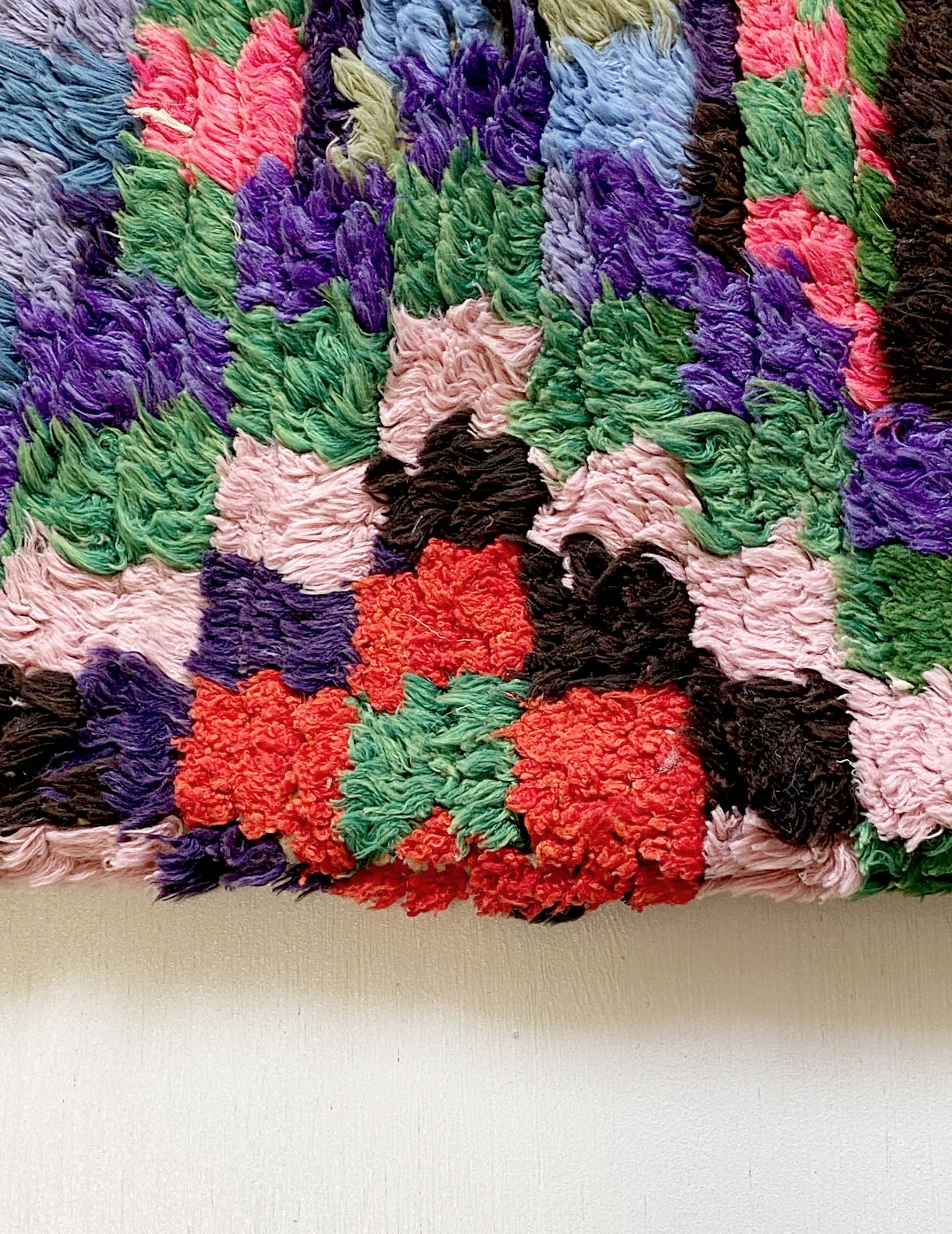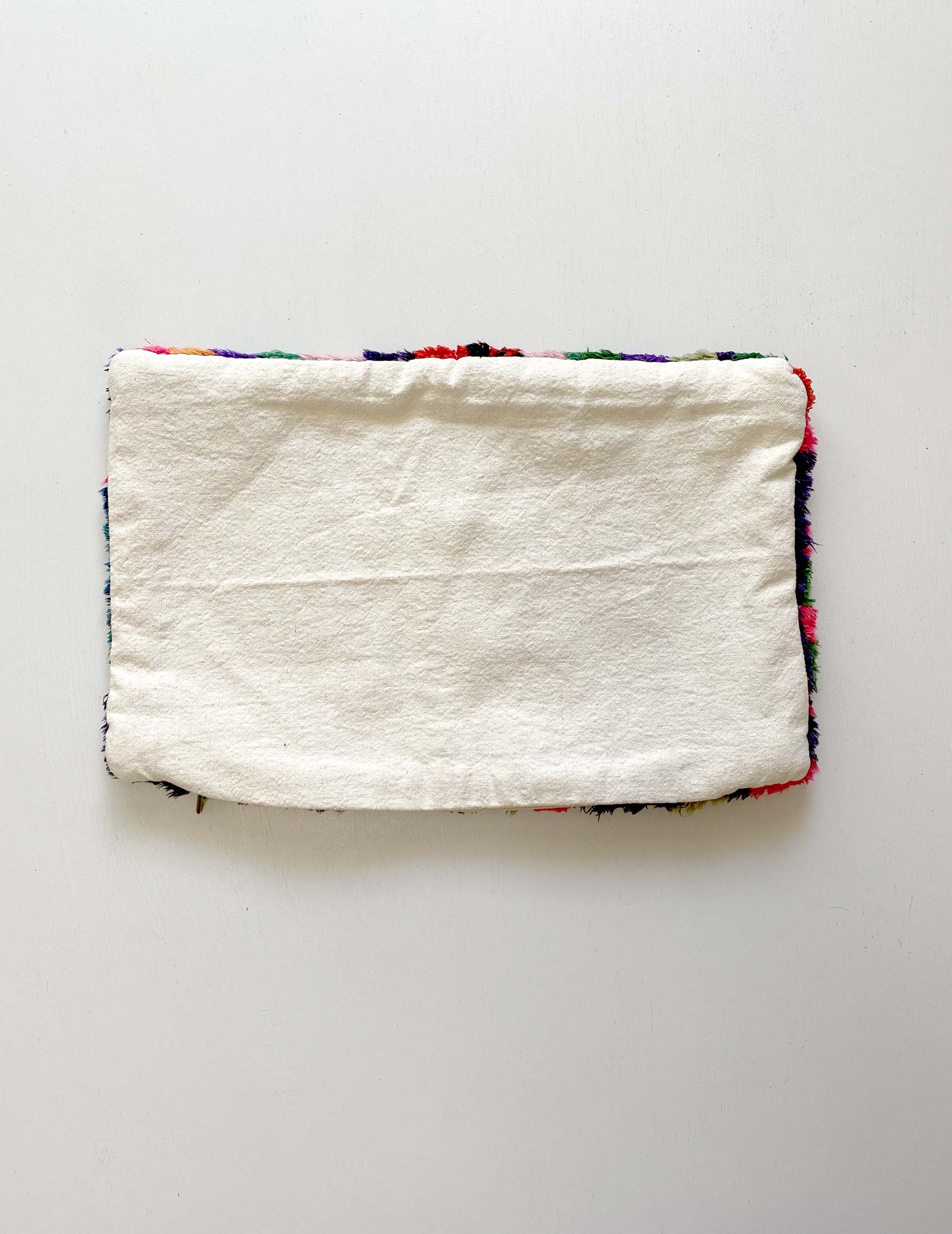 A wool cushion cover made from a handmade rug woven by Berber women.