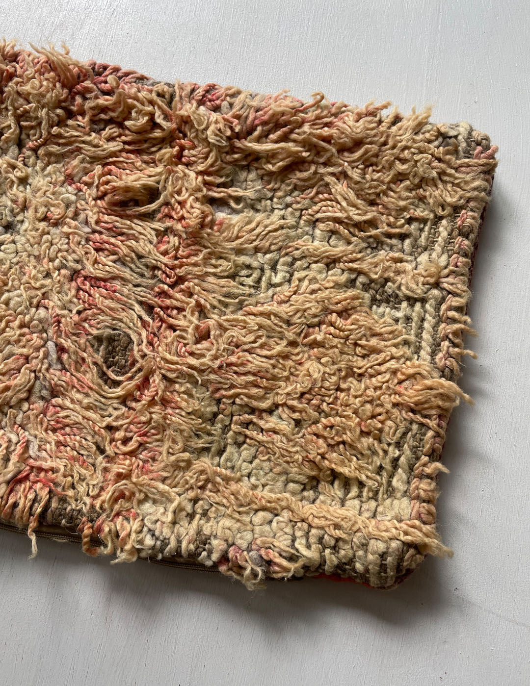 A wool cushion cover made from a handmade rug woven by Berber women.