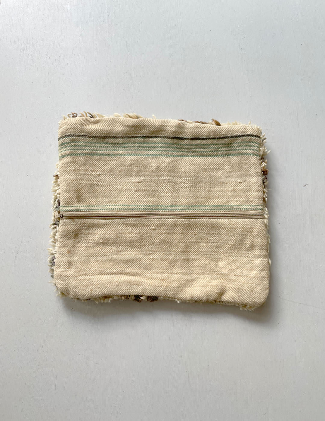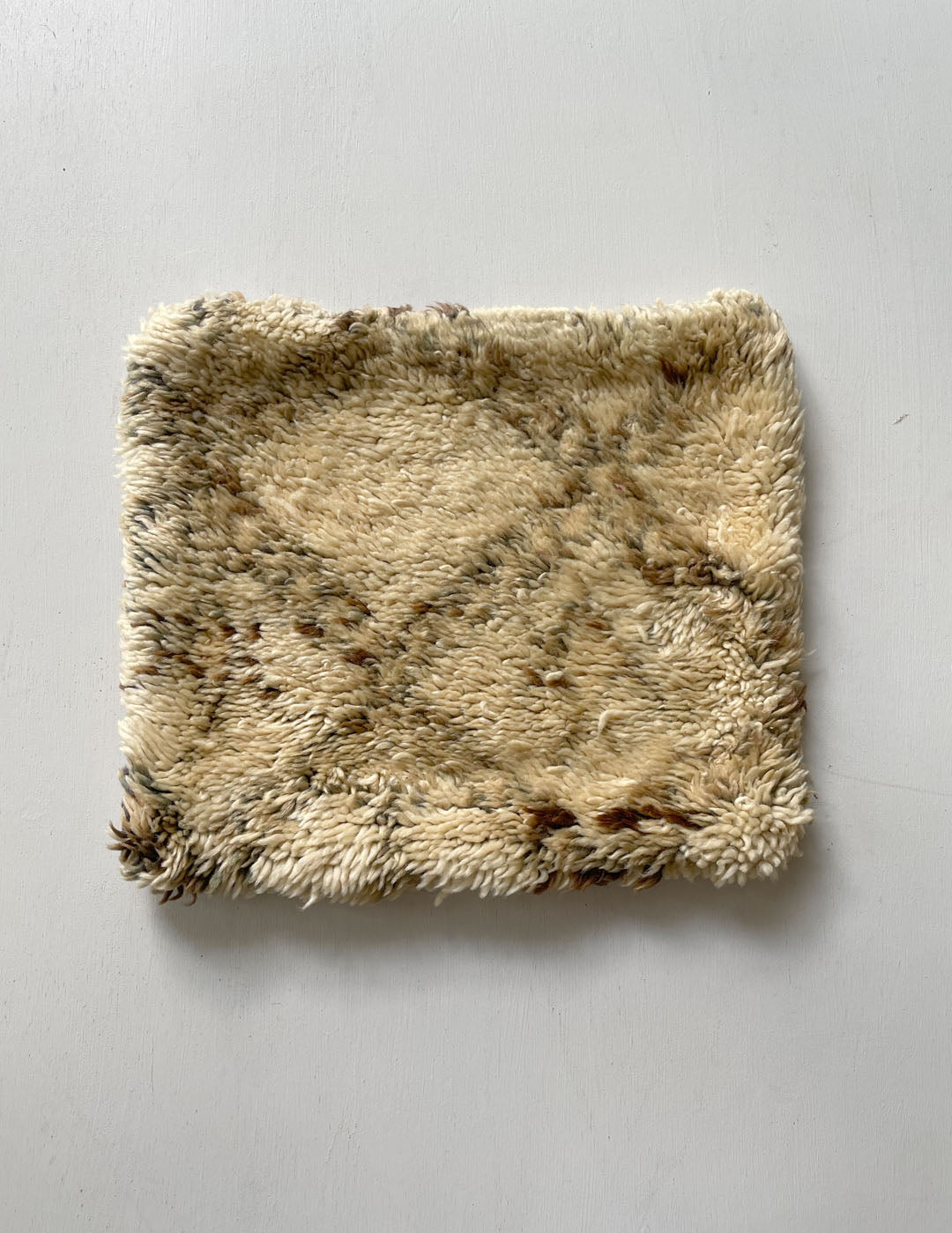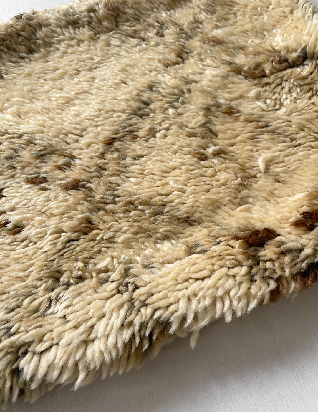 A wool cushion cover made from a handmade rug woven by Berber women.