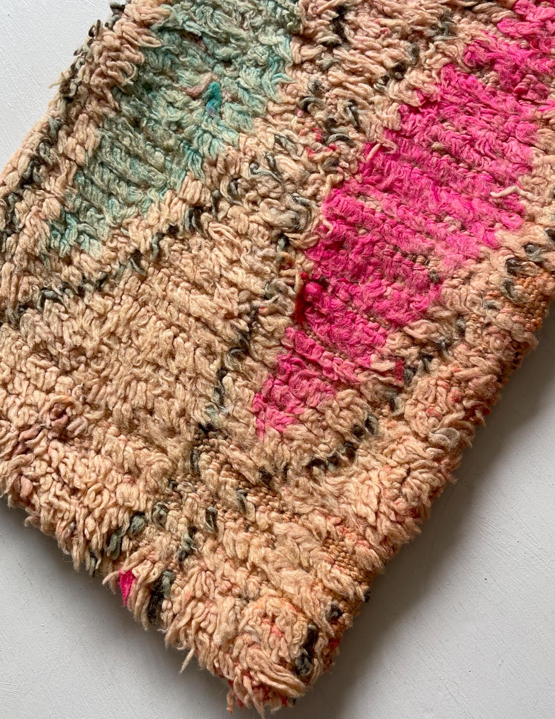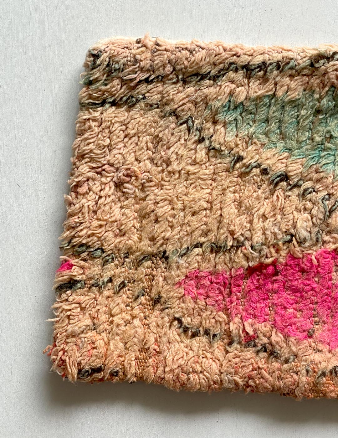 A wool cushion cover made from a handmade rug woven by Berber women.
