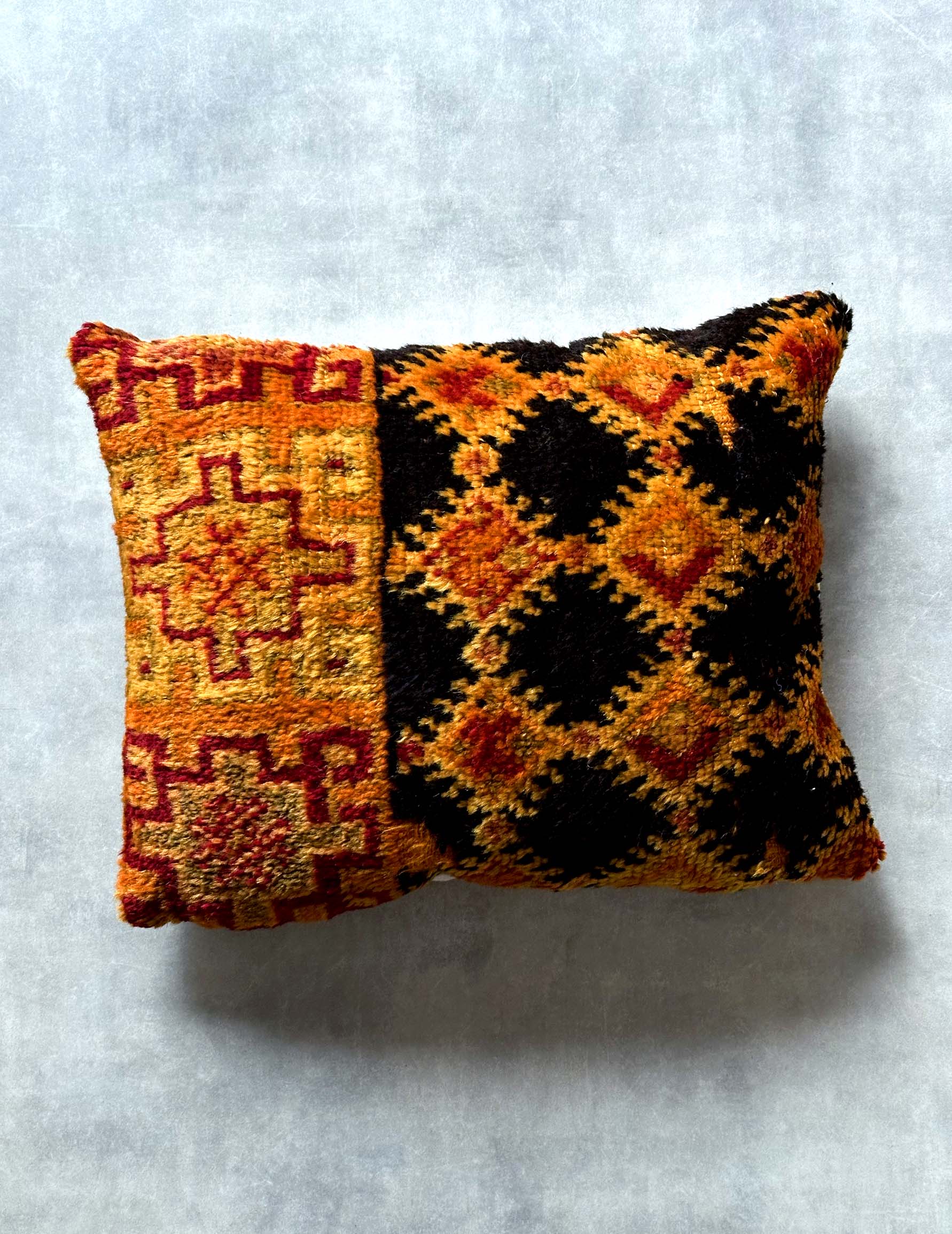 This wool cushion cover is made from a handmade rug woven by Berber women.