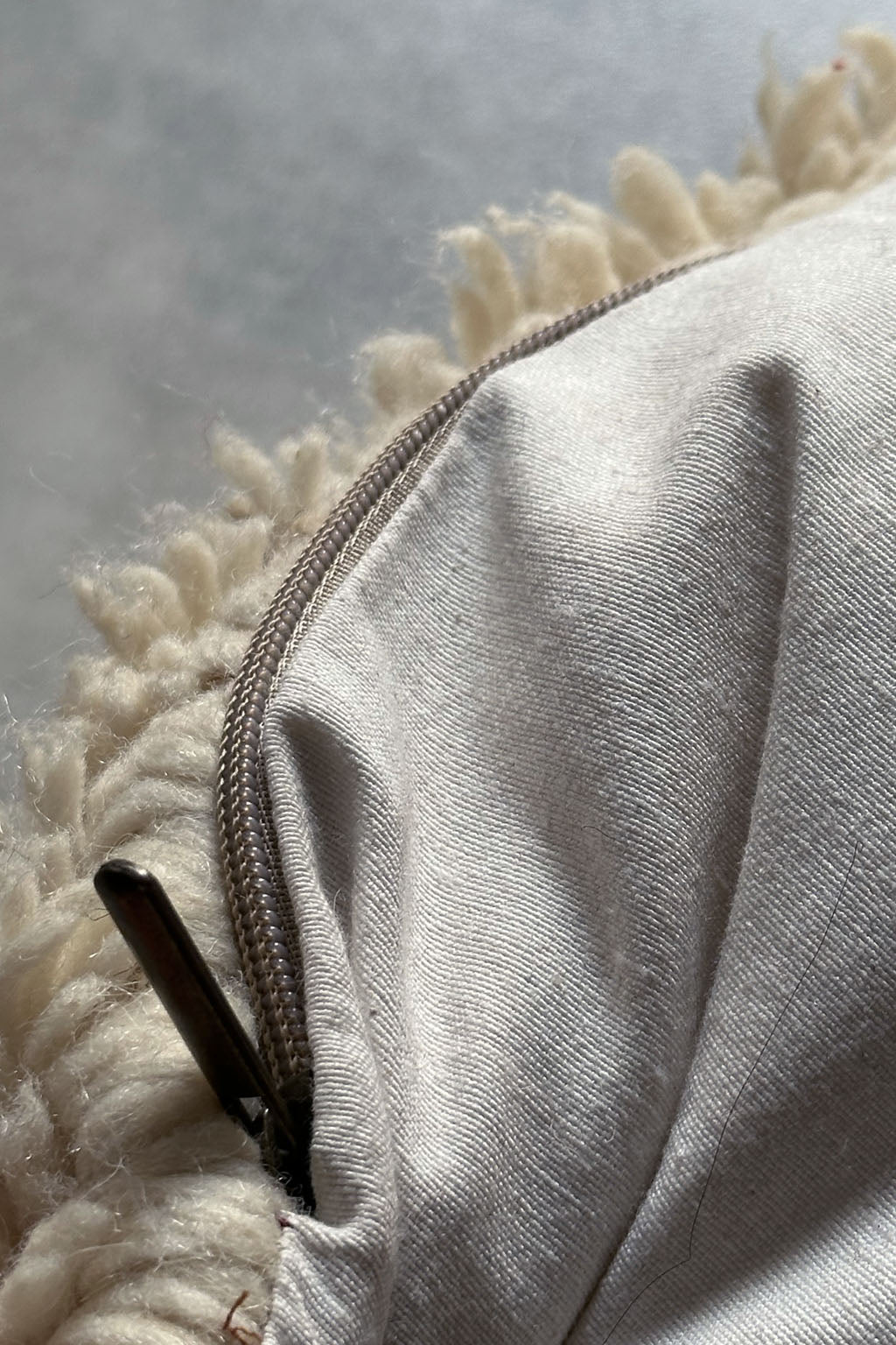This wool cushion cover is made from a handmade rug woven by Berber women.