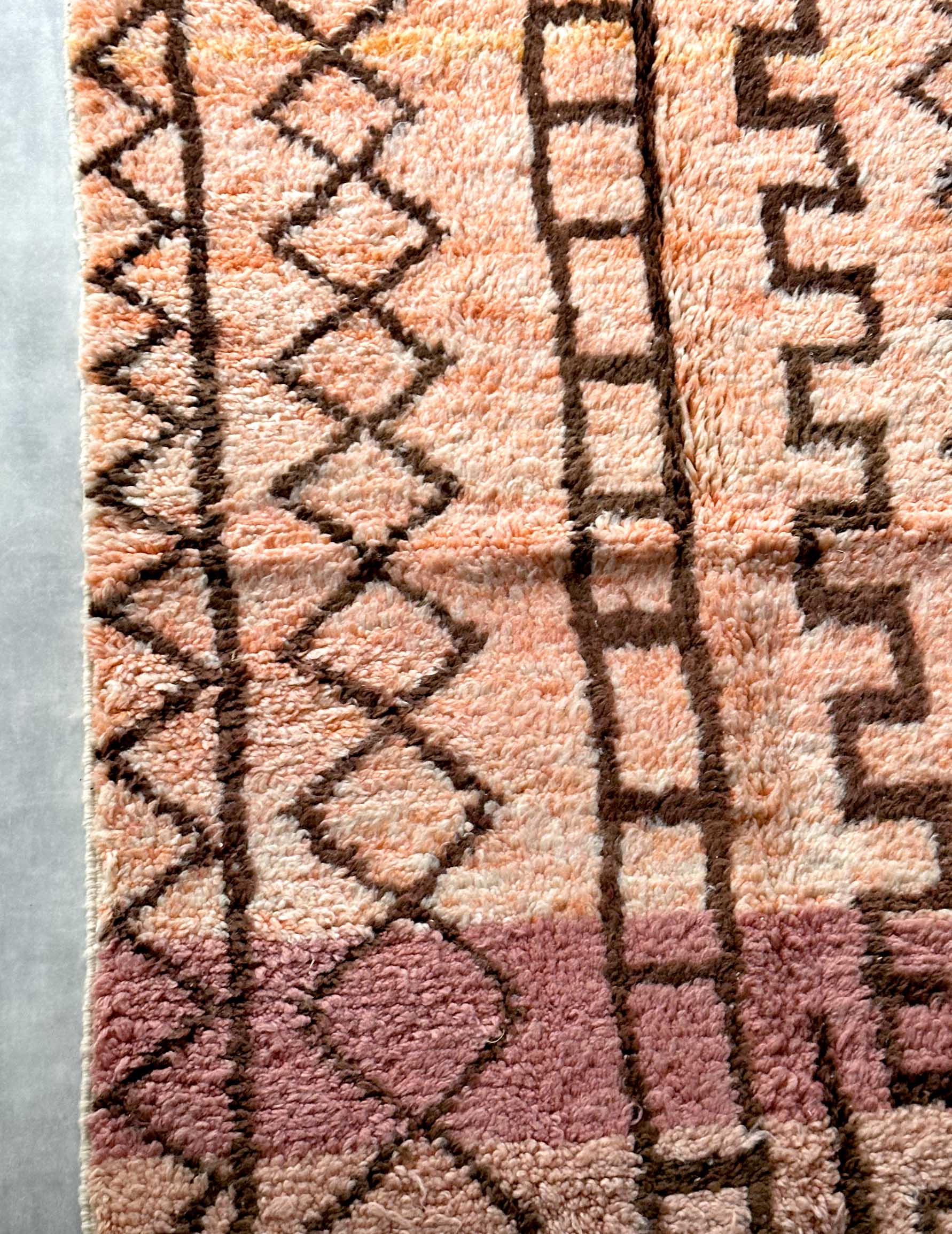 This is a handmade wool rug, tightly woven by Berber women living in the Atlas Mountains of Morocco.
