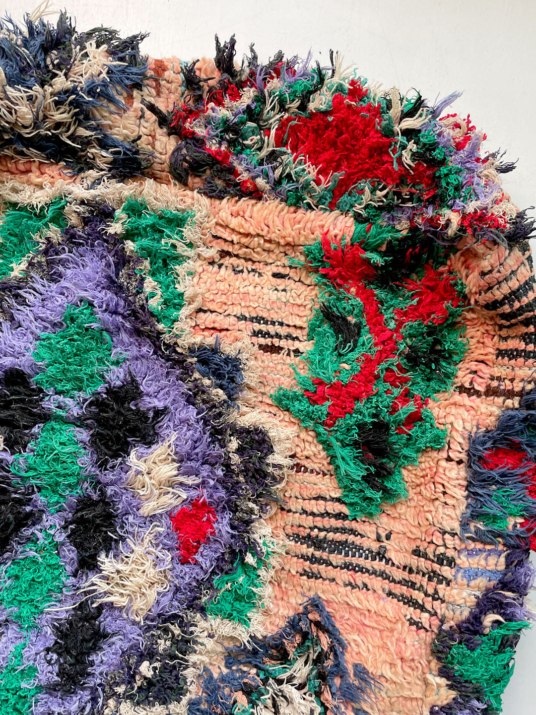 ブジャドラグは別名ジュエルラグと言われ宝石のように赤やピンクなどがベースのラグです。