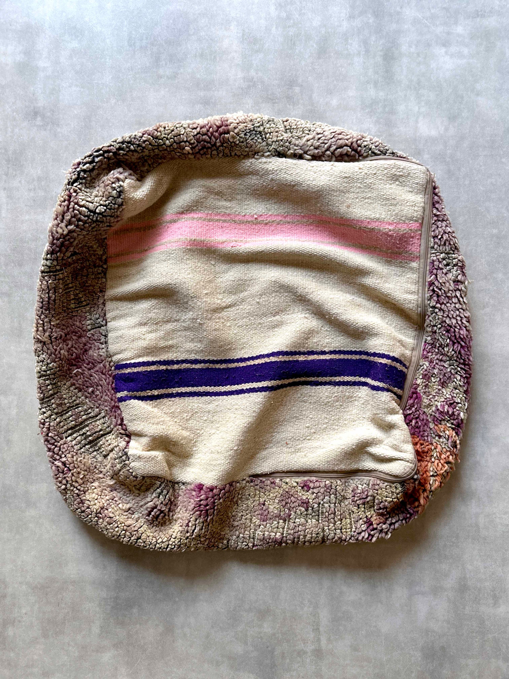 ブジャドプフはモロッコのアトラス山脈に住む、ベルベル人女性によって編まれた毛の短いウールラグを使用し作られたプフとなります。