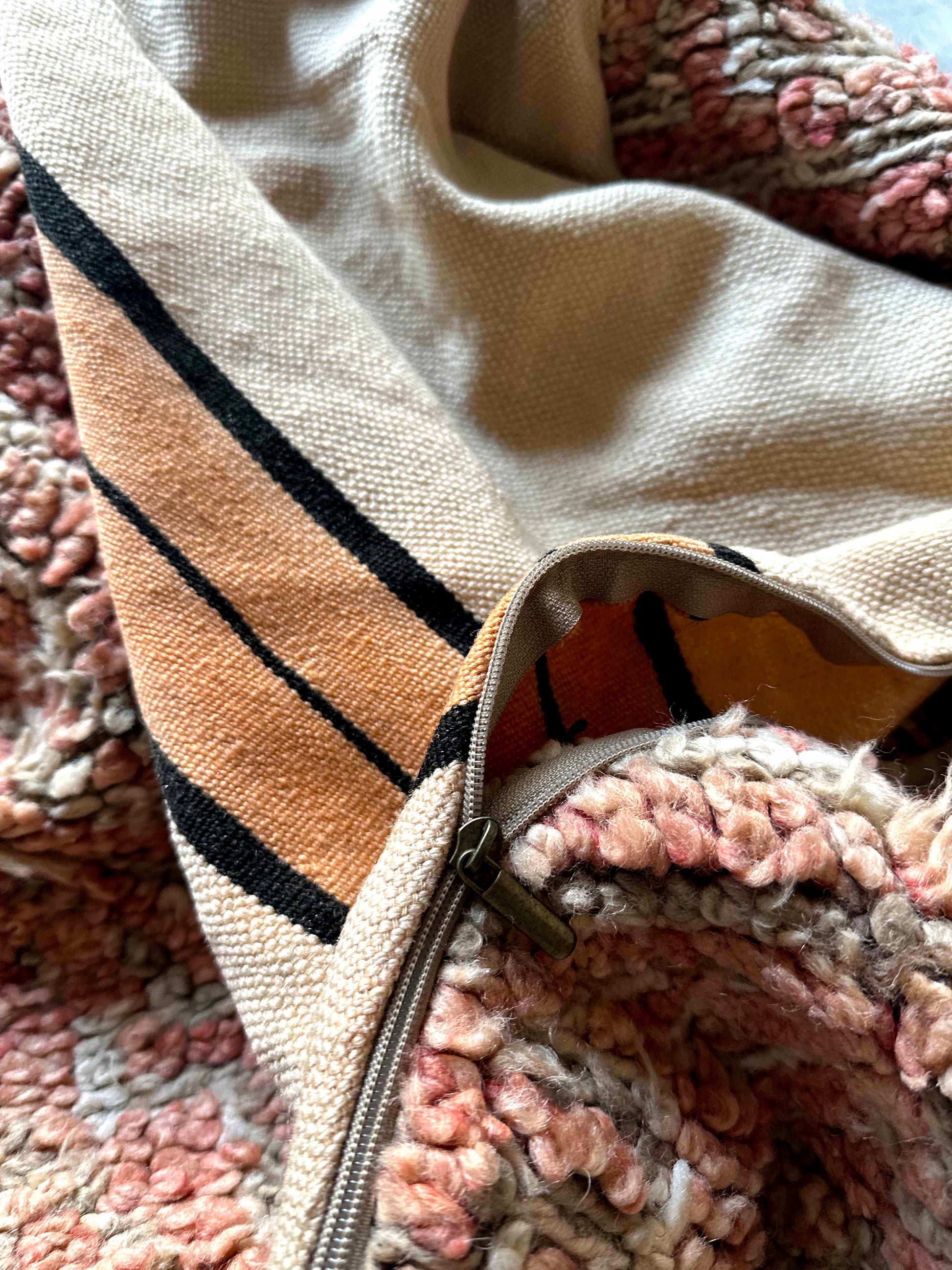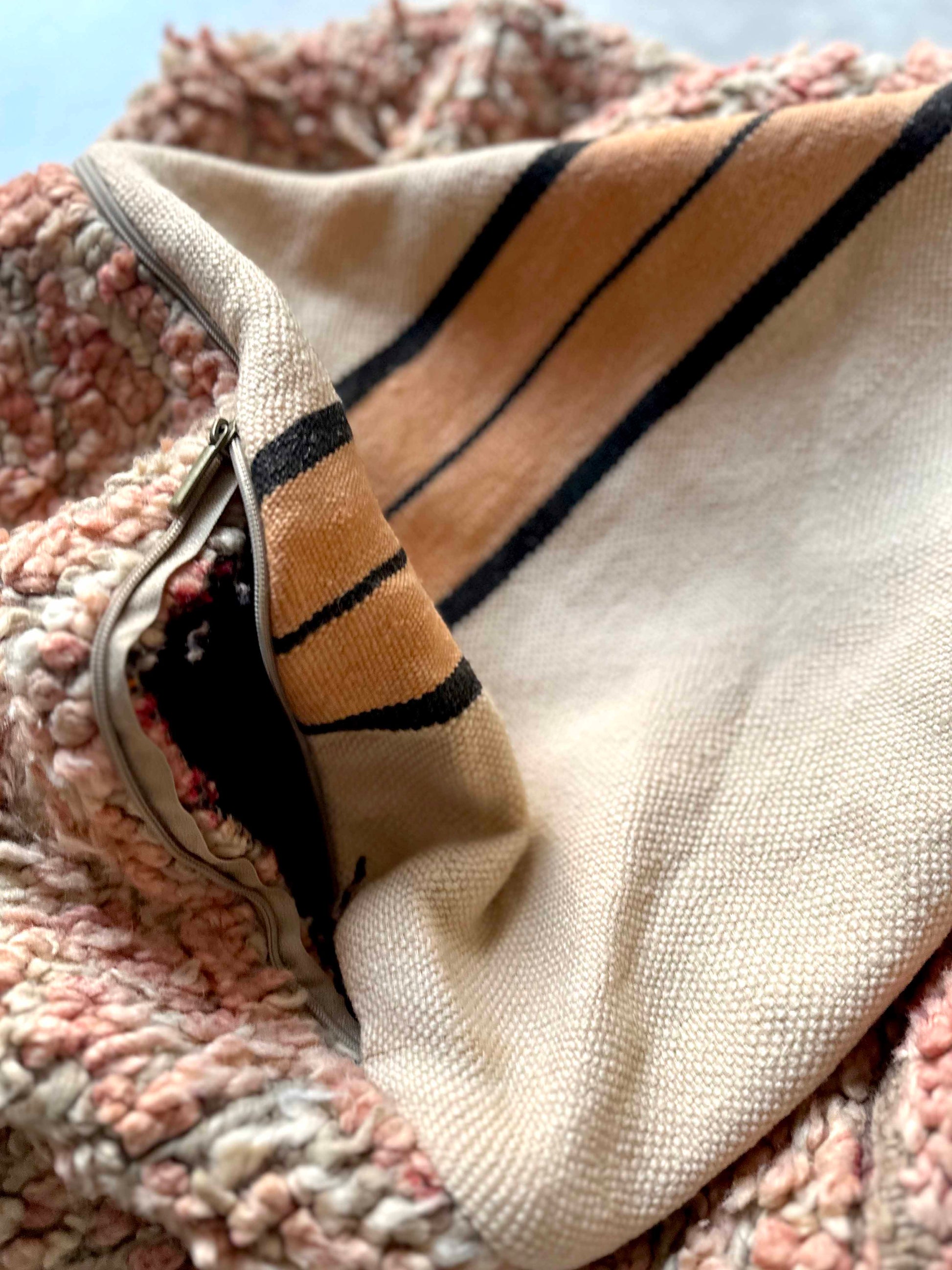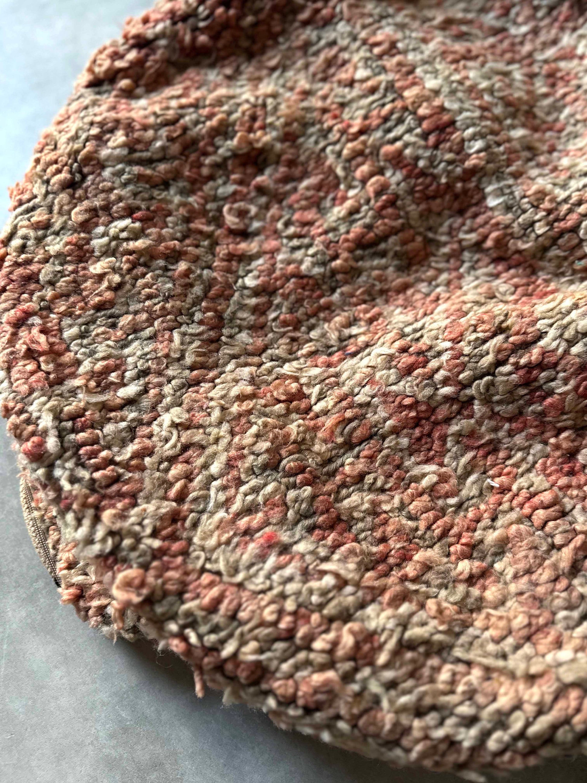 The Boujad Pouf is a pouf made from a short-pile wool rug woven by Berber women living in the Atlas Mountains of Morocco.
