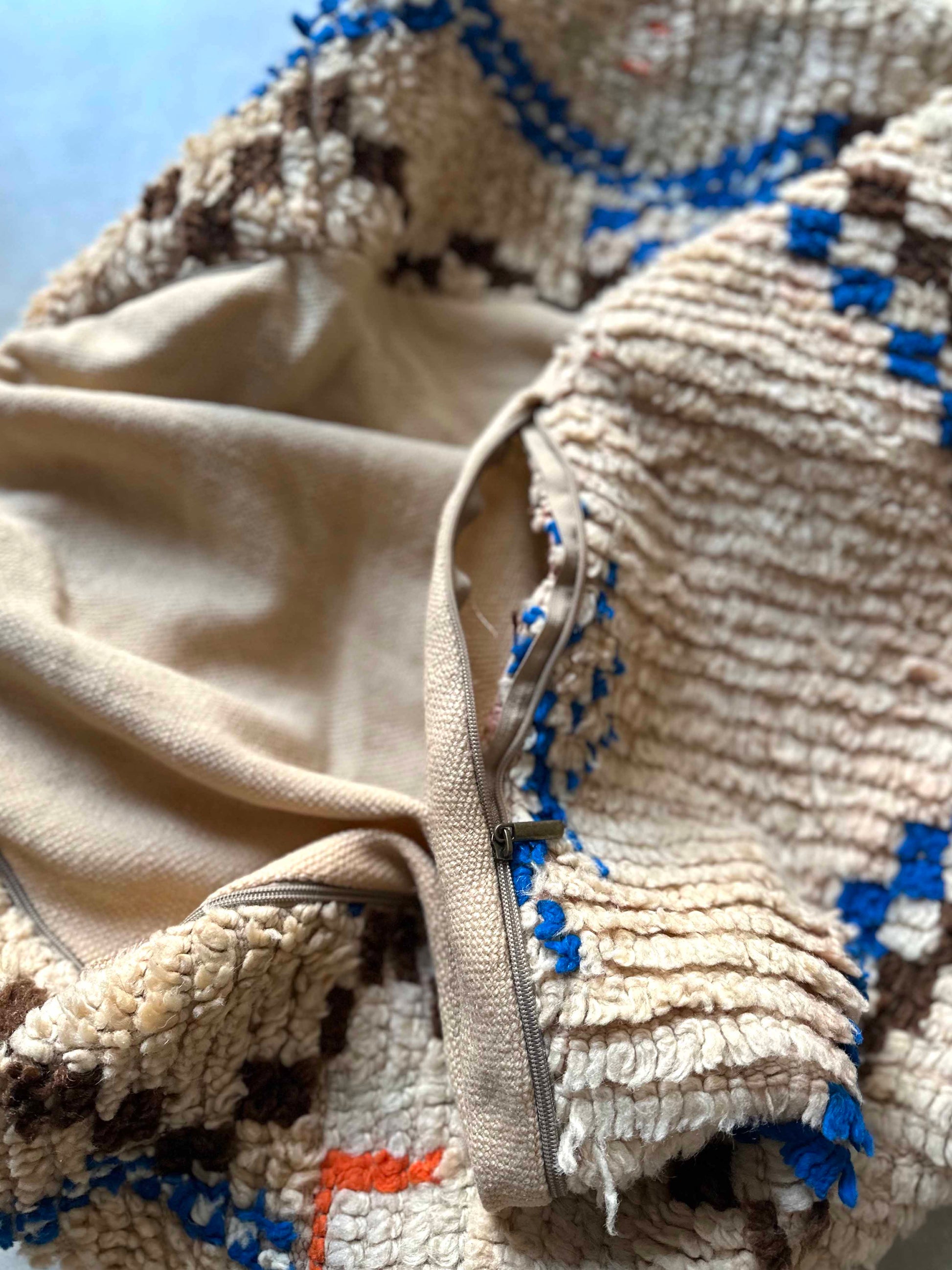 The Boujad Pouf is a pouf made from a short-pile wool rug woven by Berber women living in the Atlas Mountains of Morocco.