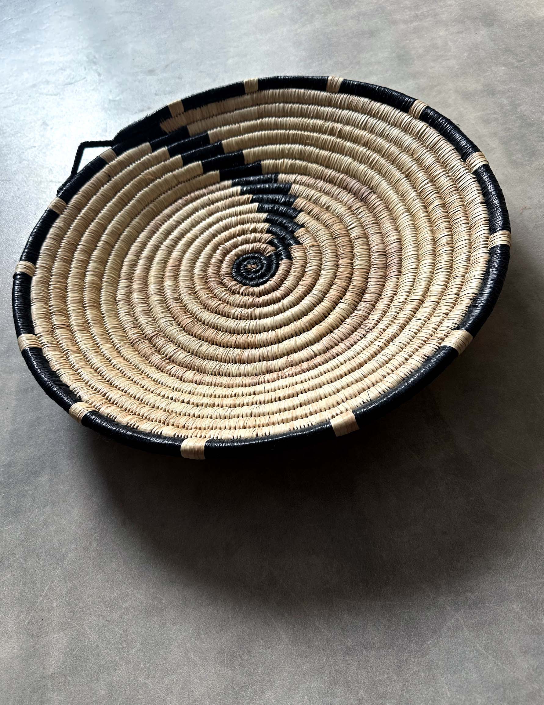 These large, colorful plates are handmade by Berber artisans in Morocco. They make a great accent piece for your wall or perfect for serving fruit, vegetables, or bread on the table. Each plate features a unique traditional pattern, making it truly special.