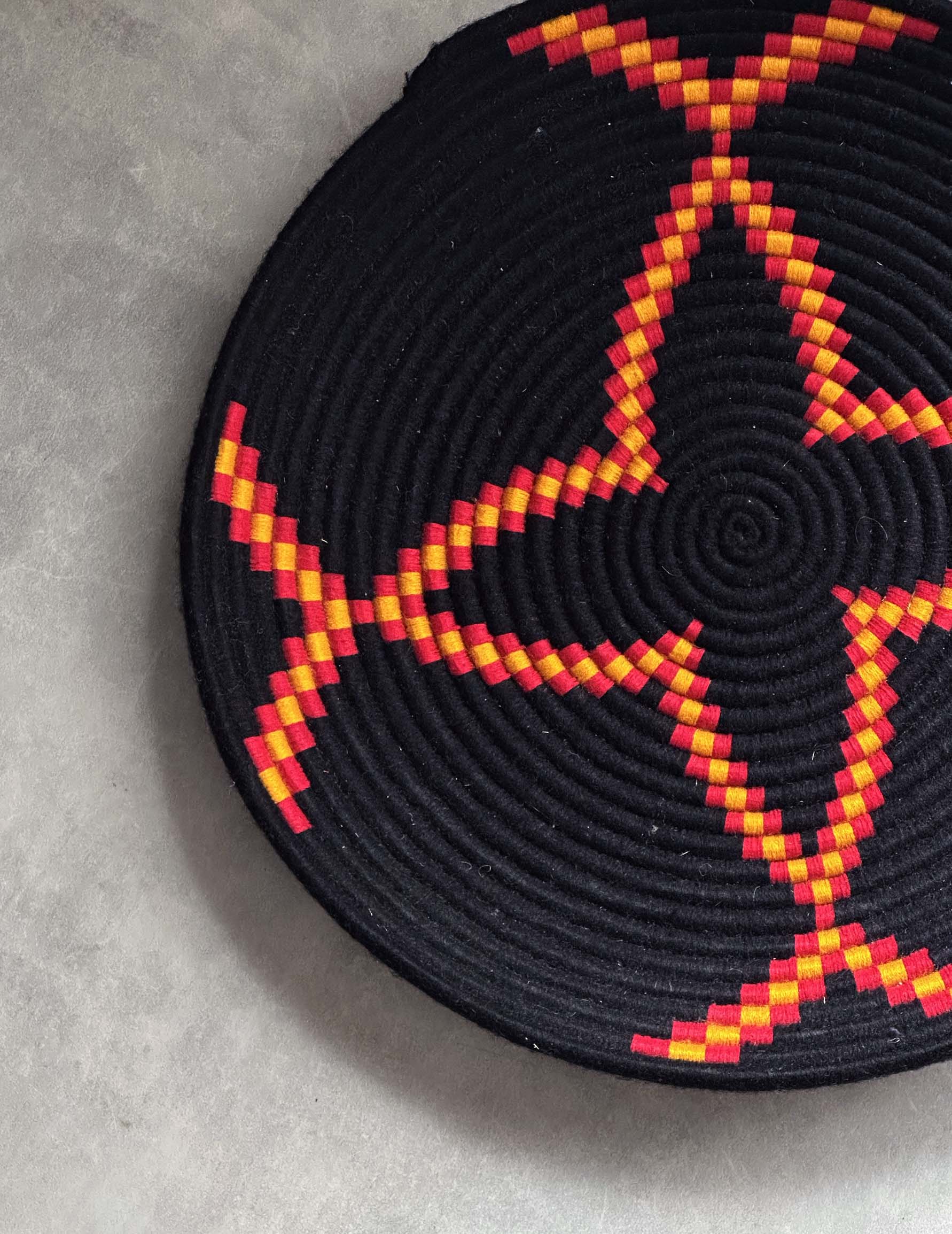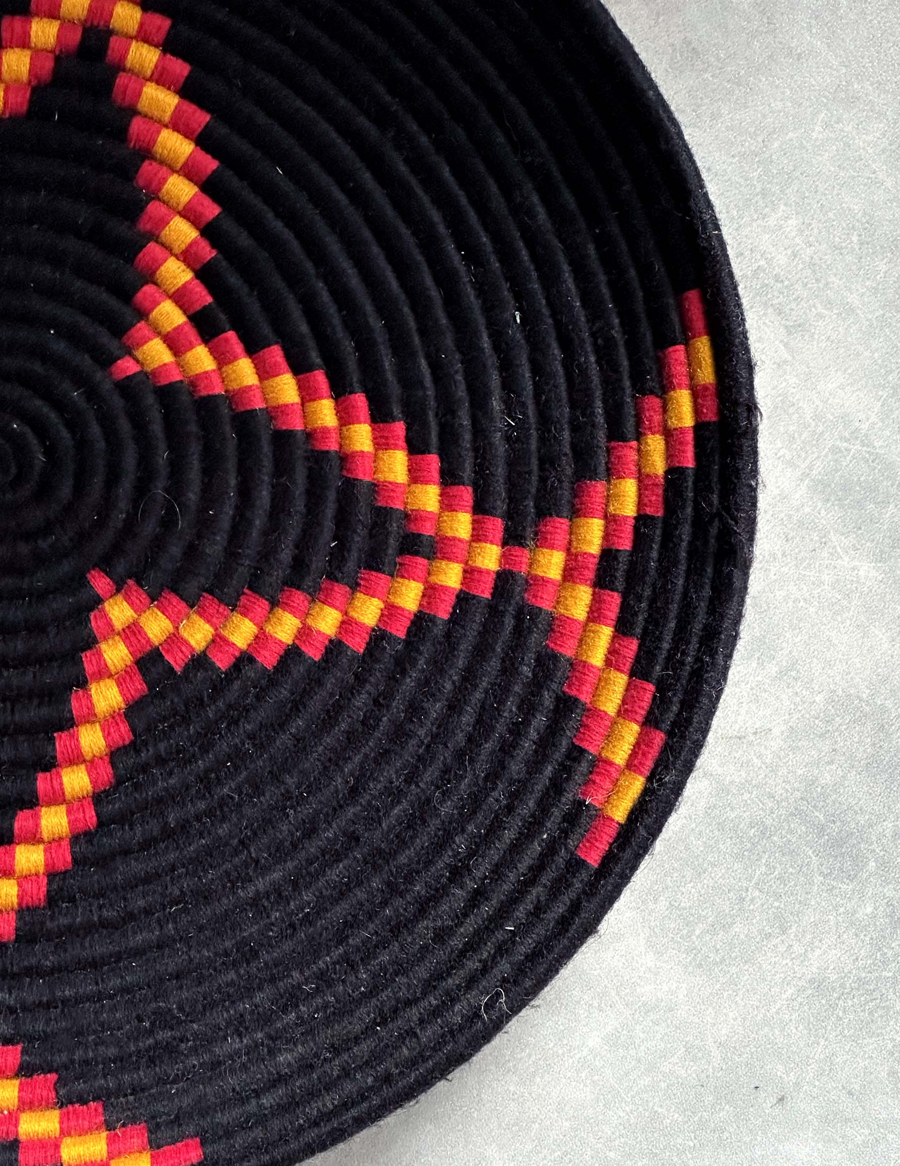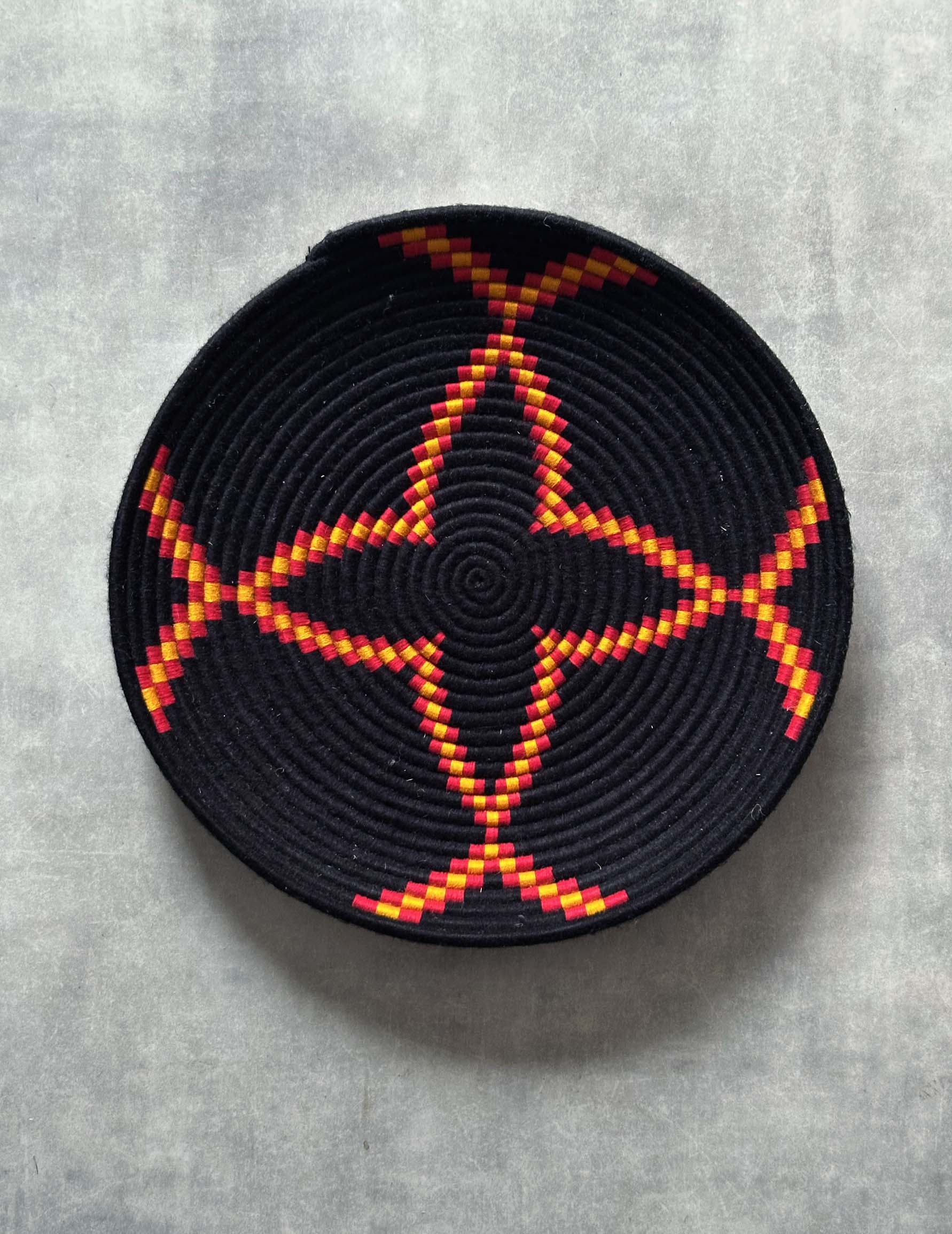 These large, colorful plates are handmade by Berber artisans in Morocco. They make a great accent piece for your wall or perfect for serving fruit, vegetables, or bread on the table. Each plate features a unique traditional pattern, making it truly special.