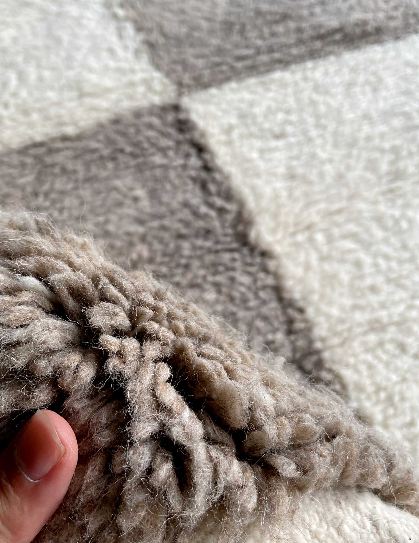 ・生産の性質上、ウールに他の色や植物の繊維が混じっている場合があります。検品の際に、除去できるものは取り除いていますが、手作業なので多少残っている場合がありますのでご了承ください。またピンセットを使うとラグを傷めずに取り除くことができます。