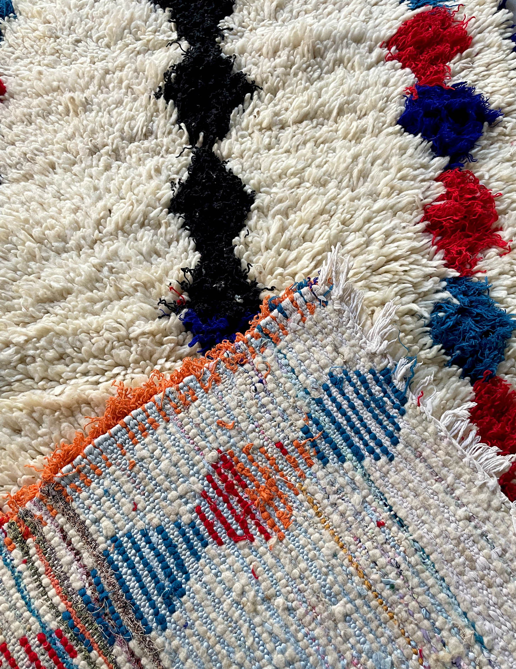 全てベルベル人女性により織られたハンドメイドのラグで、同じ物は1つとしてありません。織り目が詰まっていないため季節を問わずご使用いただけます。