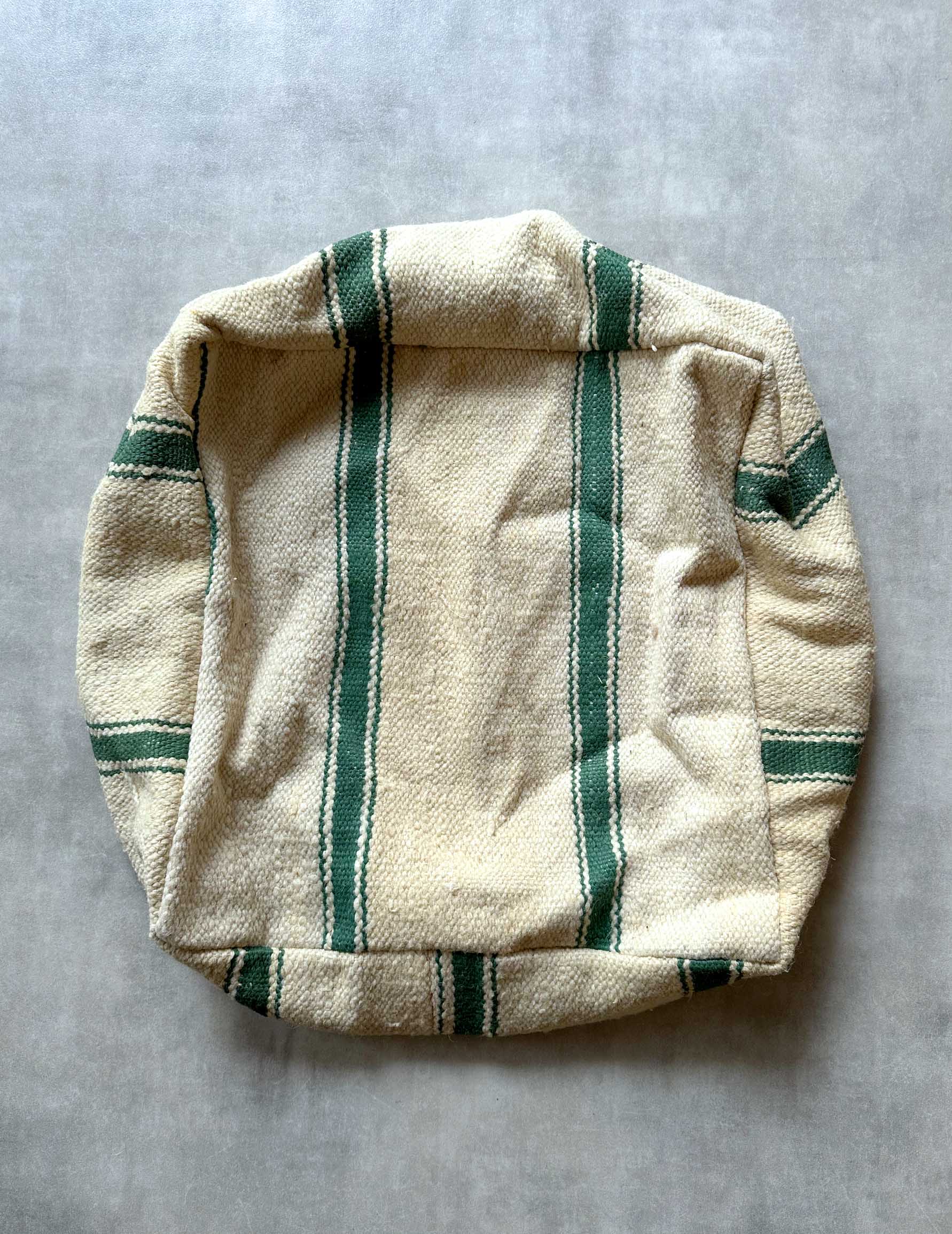 ベルベル人女性により織られたハンドメイドのキリムラグを使用したウールのプフです。