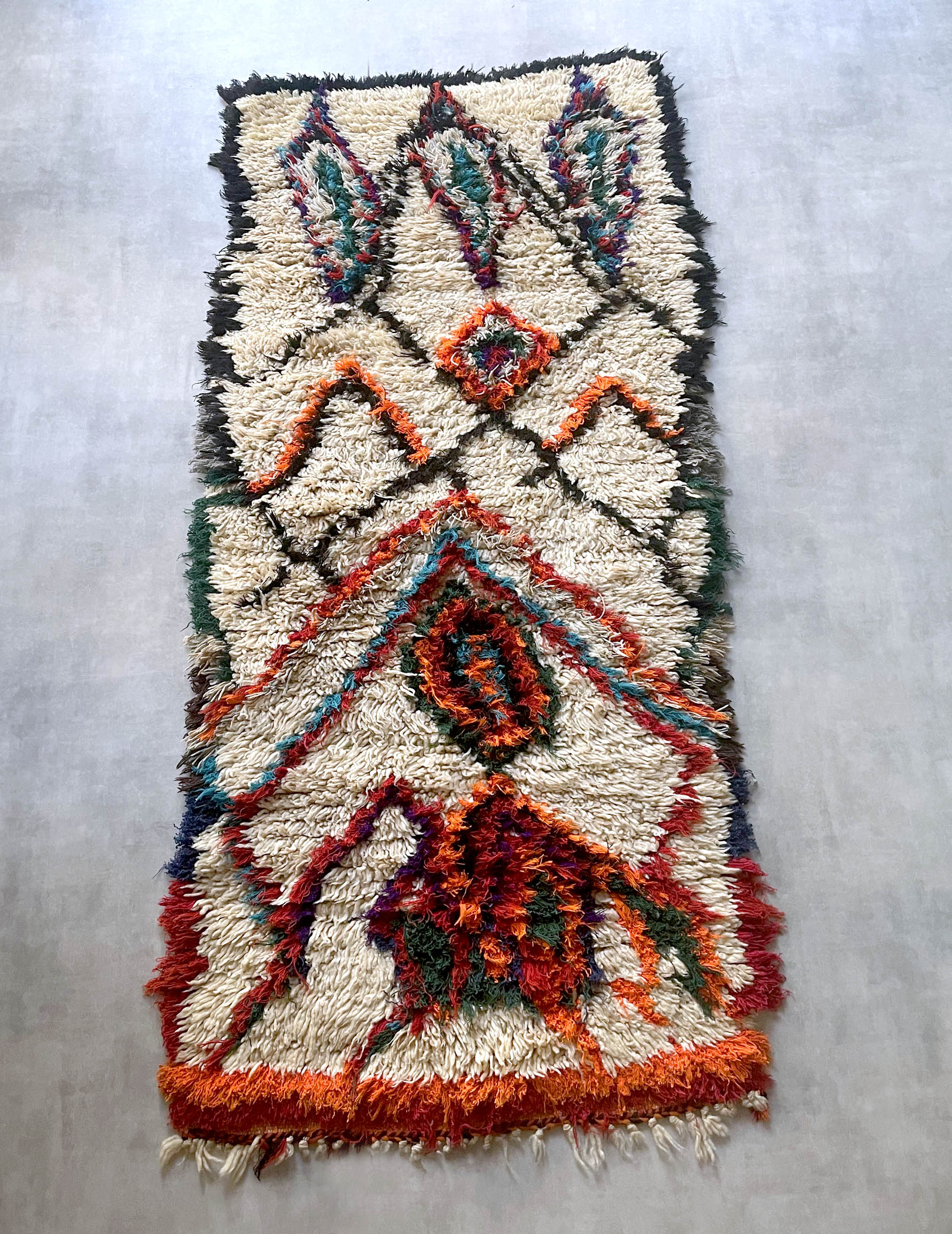こちらはウリカという地域でつくられるモロッコラグ。
