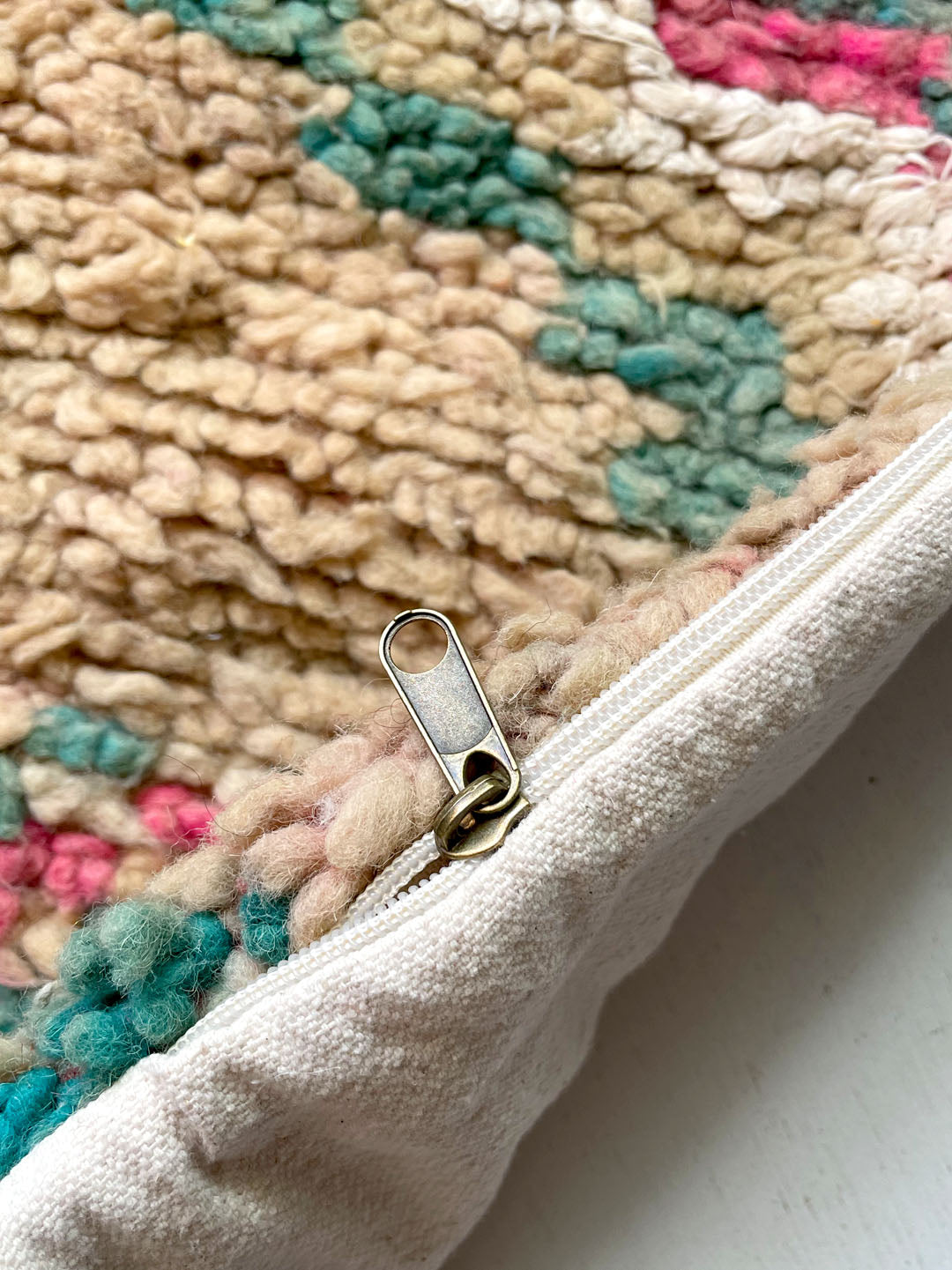 ベルベル人女性により織られたハンドメイドのラグを使用したウールのクッションカバーです。
