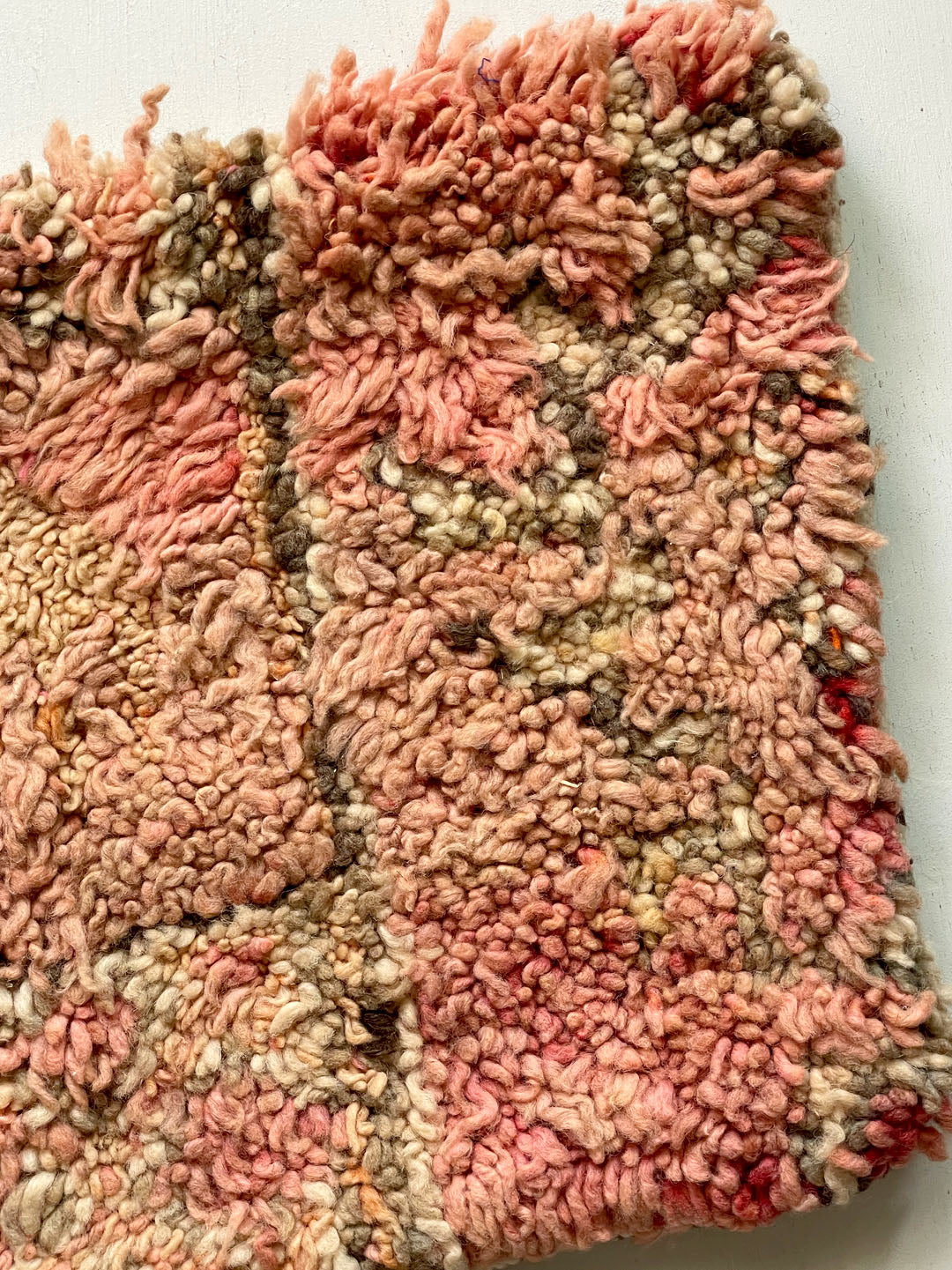 ベルベル人女性により織られたハンドメイドのラグを使用したウールのクッションカバーです。