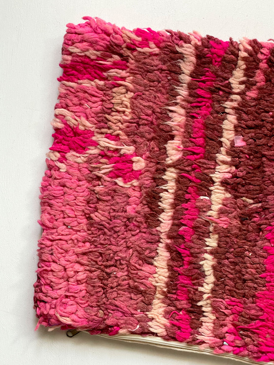 ベルベル人女性により織られたハンドメイドのラグを使用したウールのクッションカバーです。