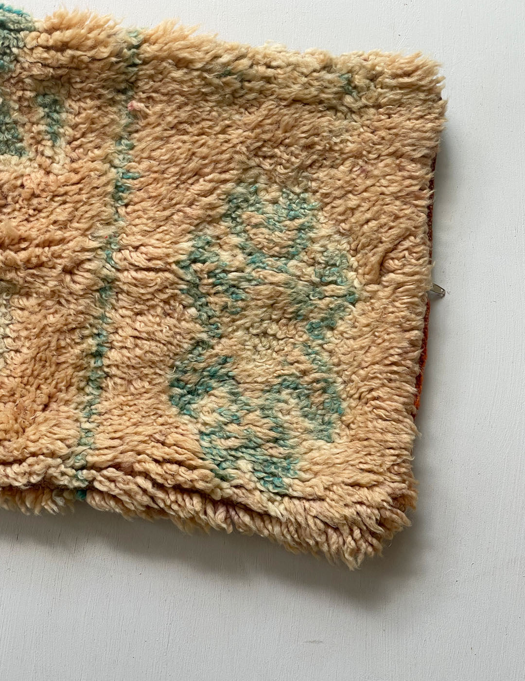ベルベル人女性により織られたハンドメイドのラグを使用したウールのクッションカバーです。