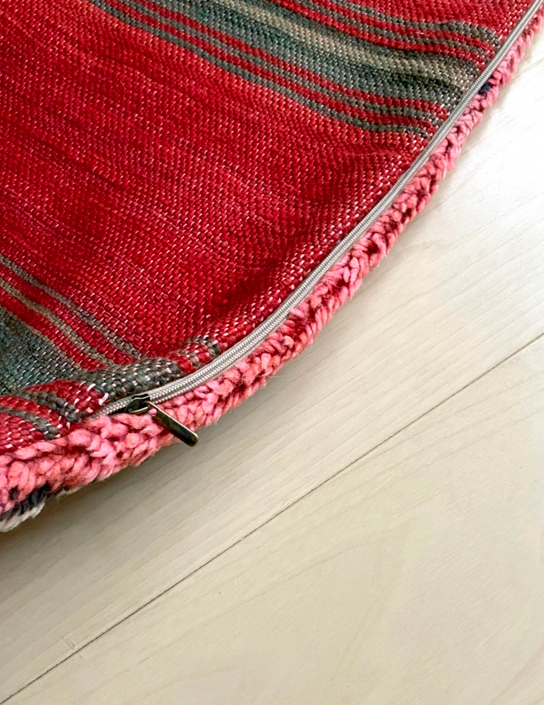 ベルベル人女性により織られたハンドメイドのラグを使用したウールのクッションカバーです。