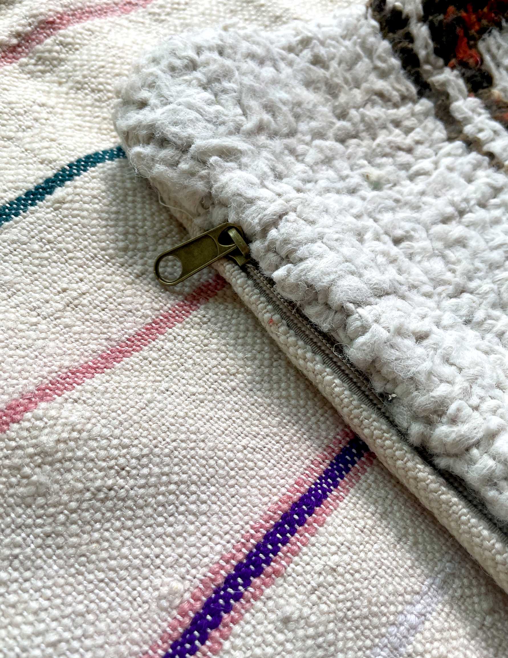 ベルベル人女性により織られたハンドメイドのラグを使用したウールのクッションカバーです。