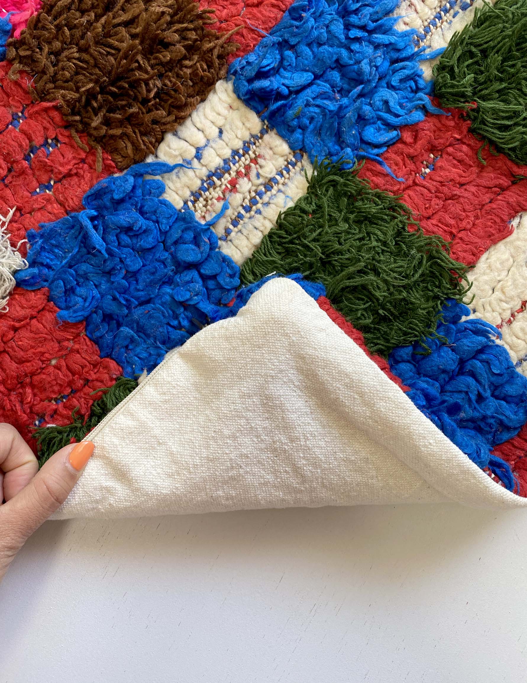 ベルベル人女性により織られたハンドメイドのラグを使用したウールのクッションカバーです。