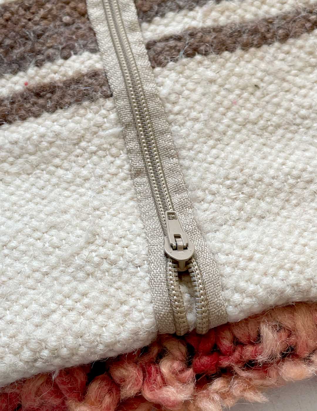 ベルベル人女性により織られたハンドメイドのラグを使用したウールのクッションカバーです。