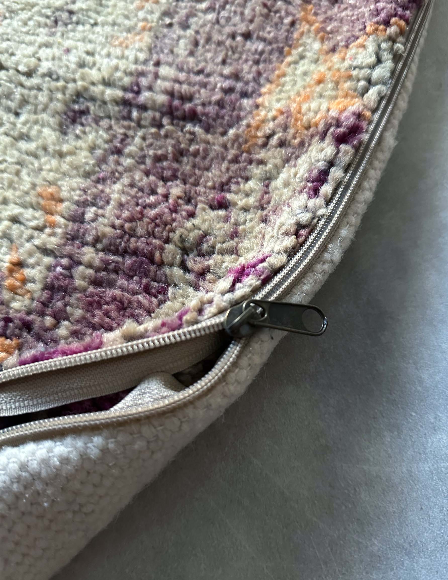 ベルベル人女性が手織りしたハンドメイドのラグを使用した、ウール素材のヴィンテージクッションカバーです。世界にひとつだけの一点もののデザインで、お部屋に温かみと個性をプラスします。