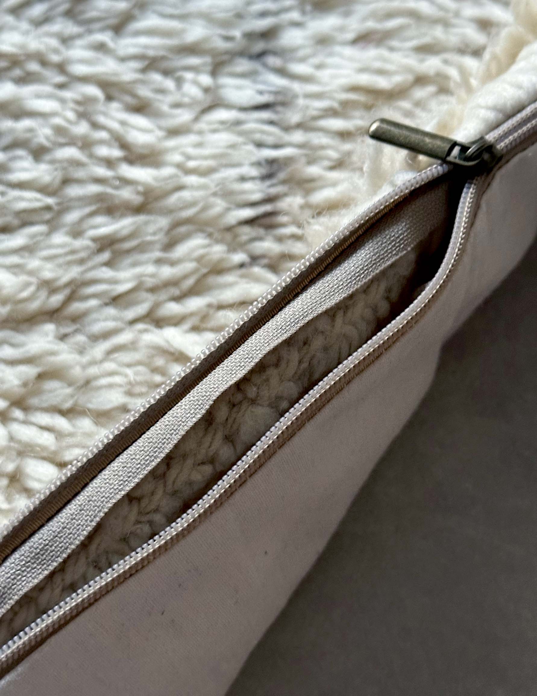 ベルベル人女性により織られたハンドメイドのラグを使用したウールのクッションカバーです。