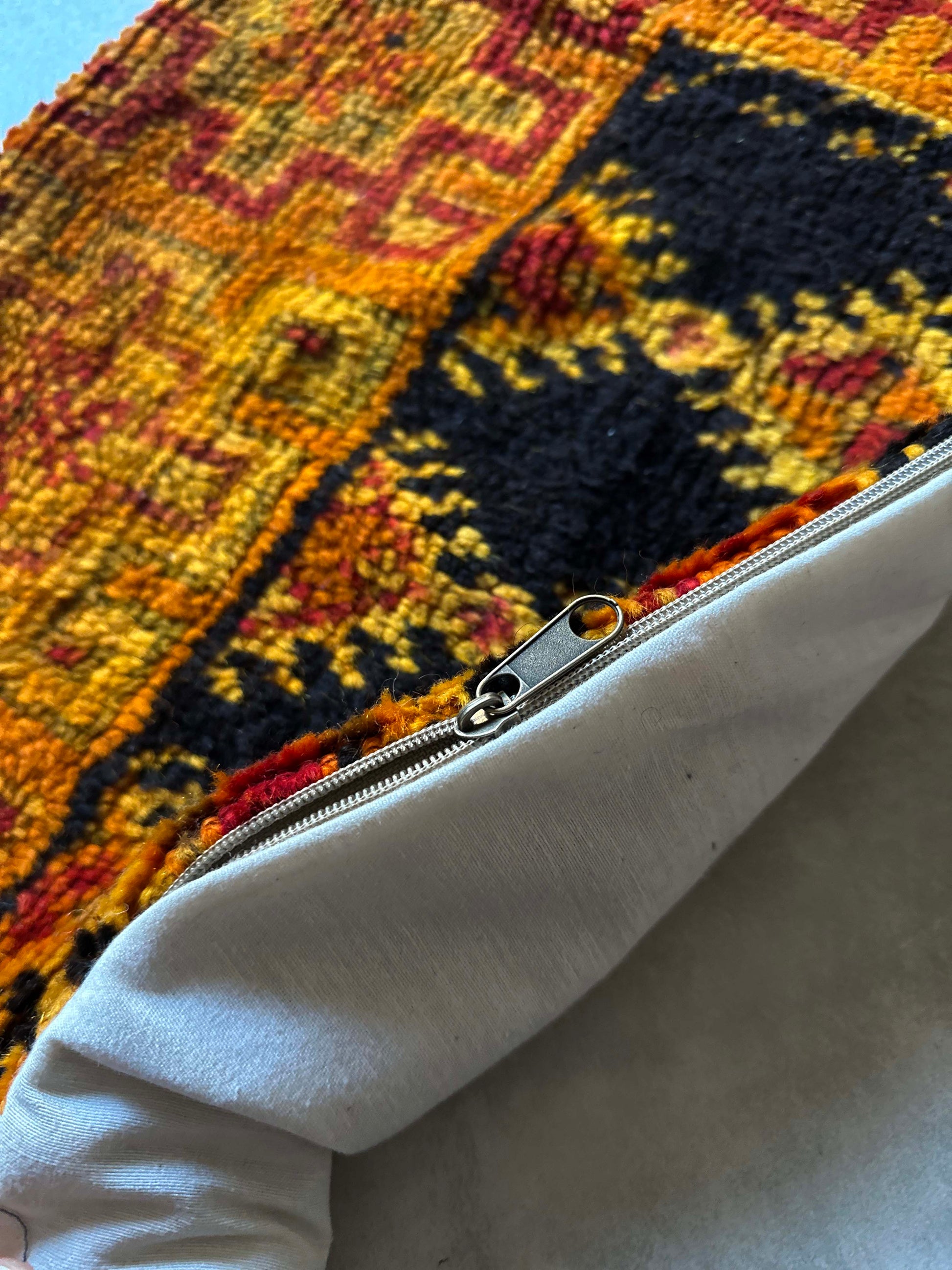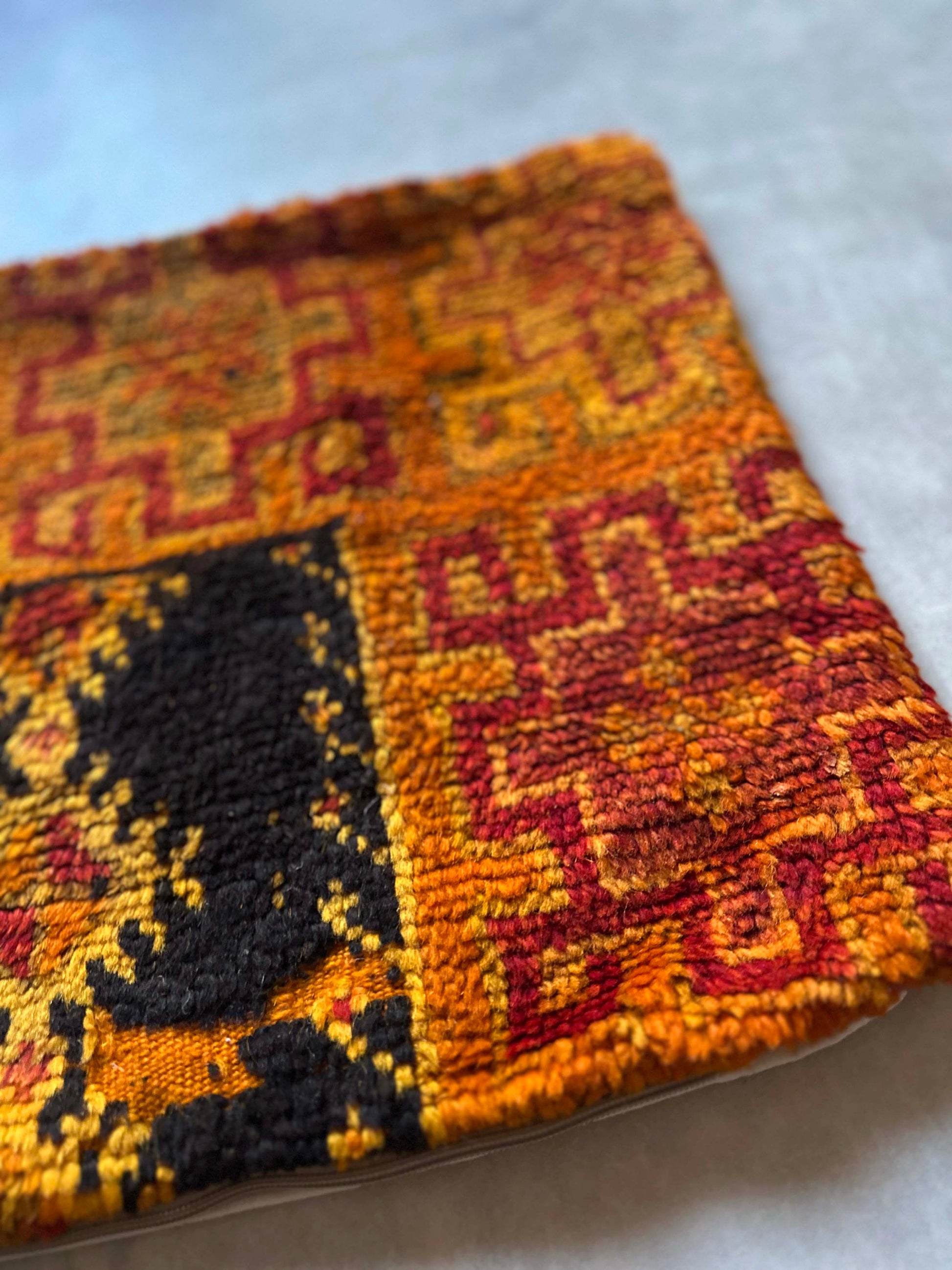 ベルベル人女性により織られたハンドメイドのラグを使用したウールのクッションカバーです。