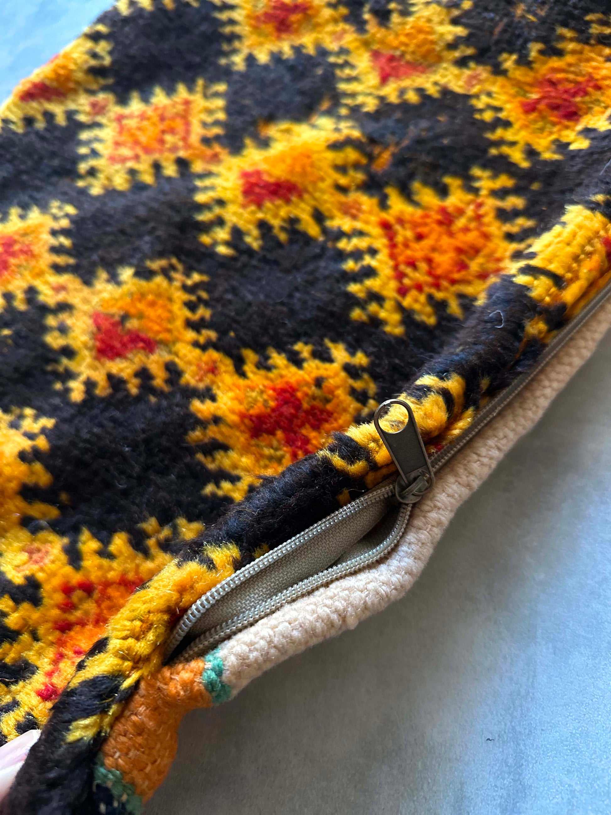 ベルベル人女性により織られたハンドメイドのラグを使用したウールのクッションカバーです。
