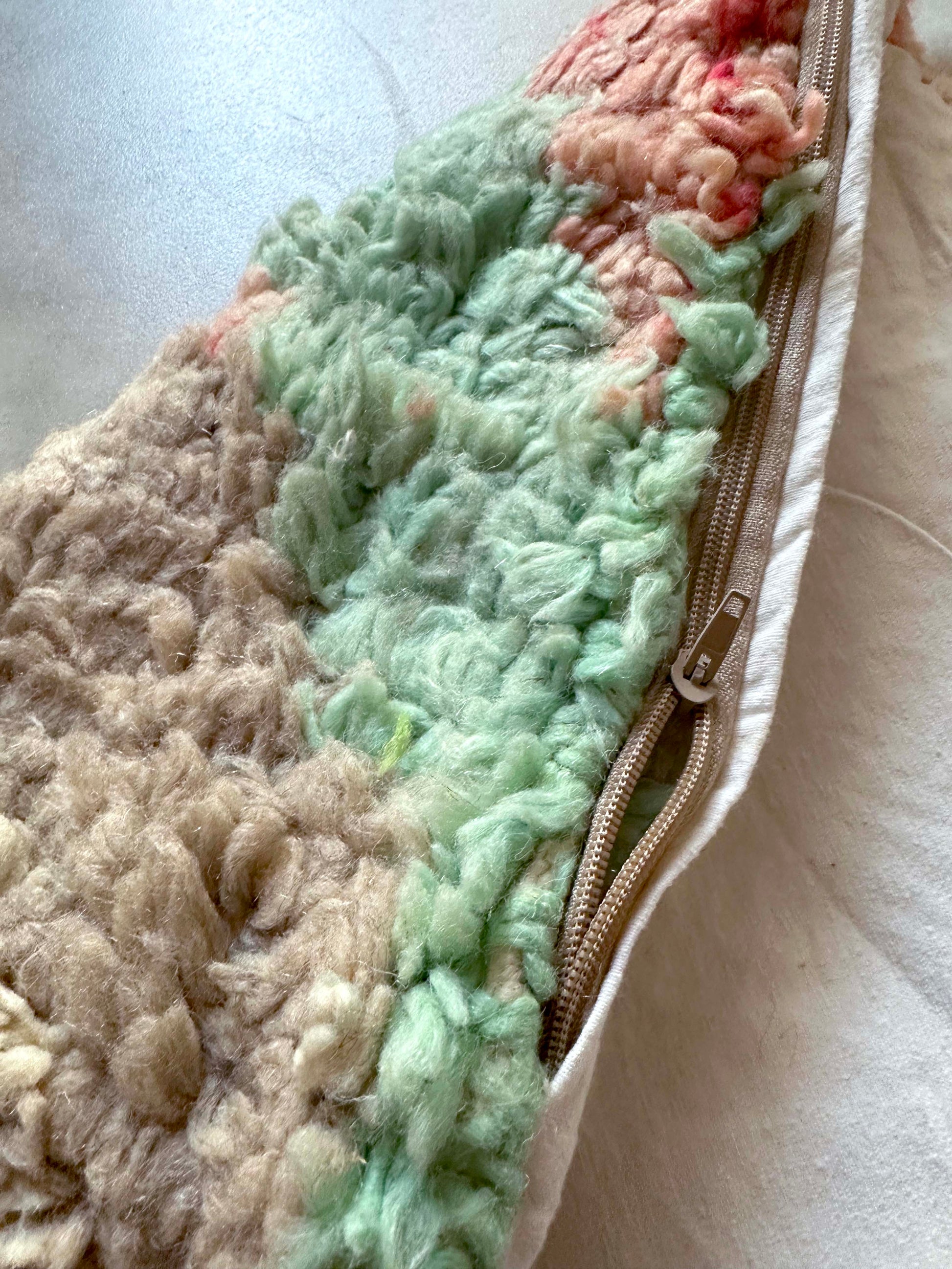 ベルベル人女性により織られたハンドメイドのラグを使用したウールのクッションカバーです。