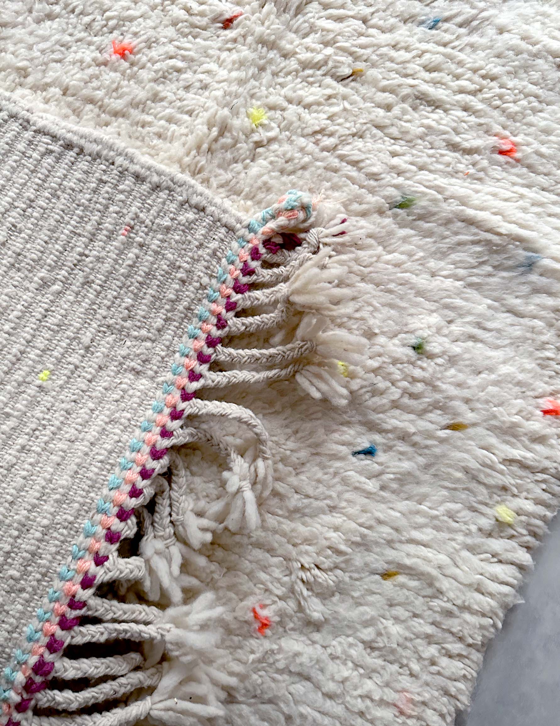 ・生産の性質上、ウールに他の色や植物の繊維が混じっている場合があります。検品の際に、除去できるものは取り除いていますが、手作業なので多少残っている場合がありますのでご了承ください。またピンセットを使うとラグを傷めずに取り除くことができます。
