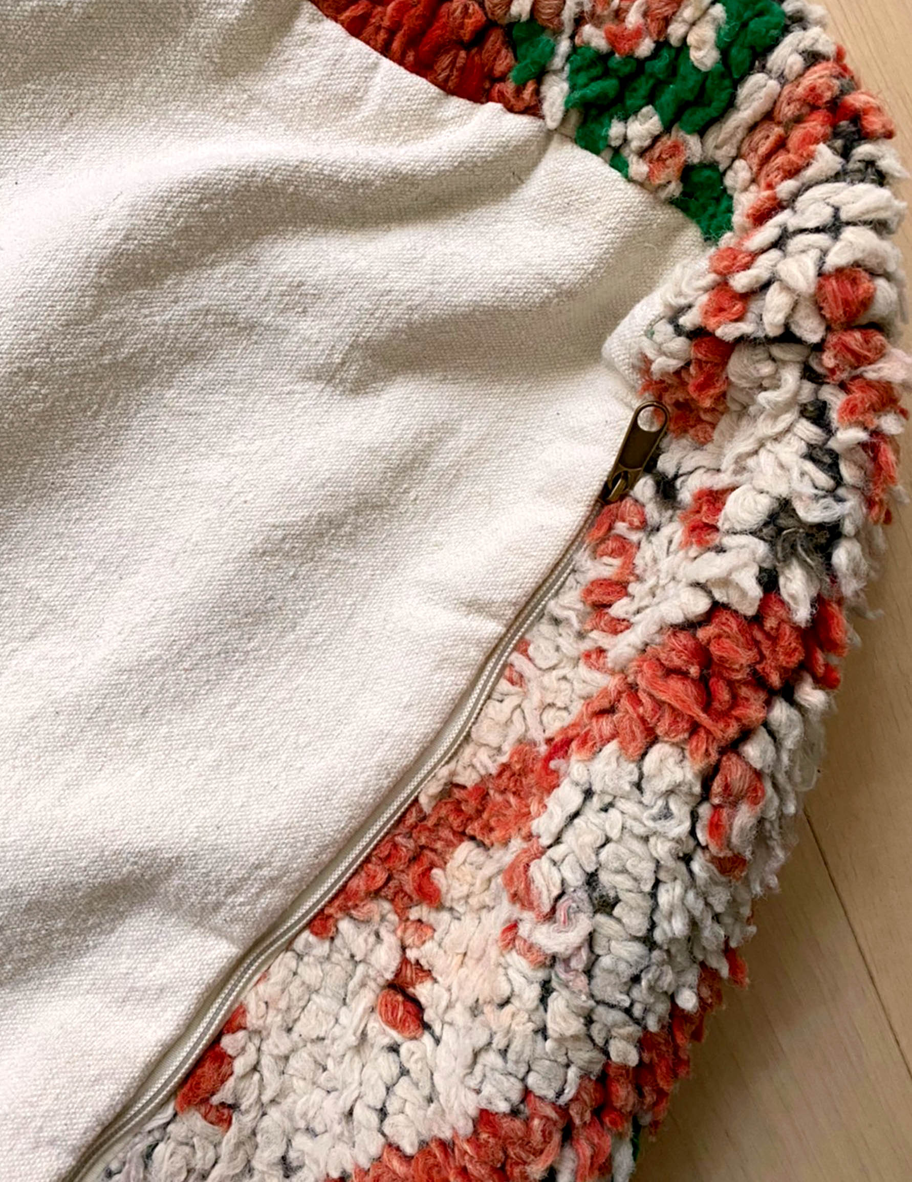 ブジャドプフはモロッコのアトラス山脈に住む、ベルベル人女性によって編まれた毛の短いウールラグを使用し作られたプフとなります。