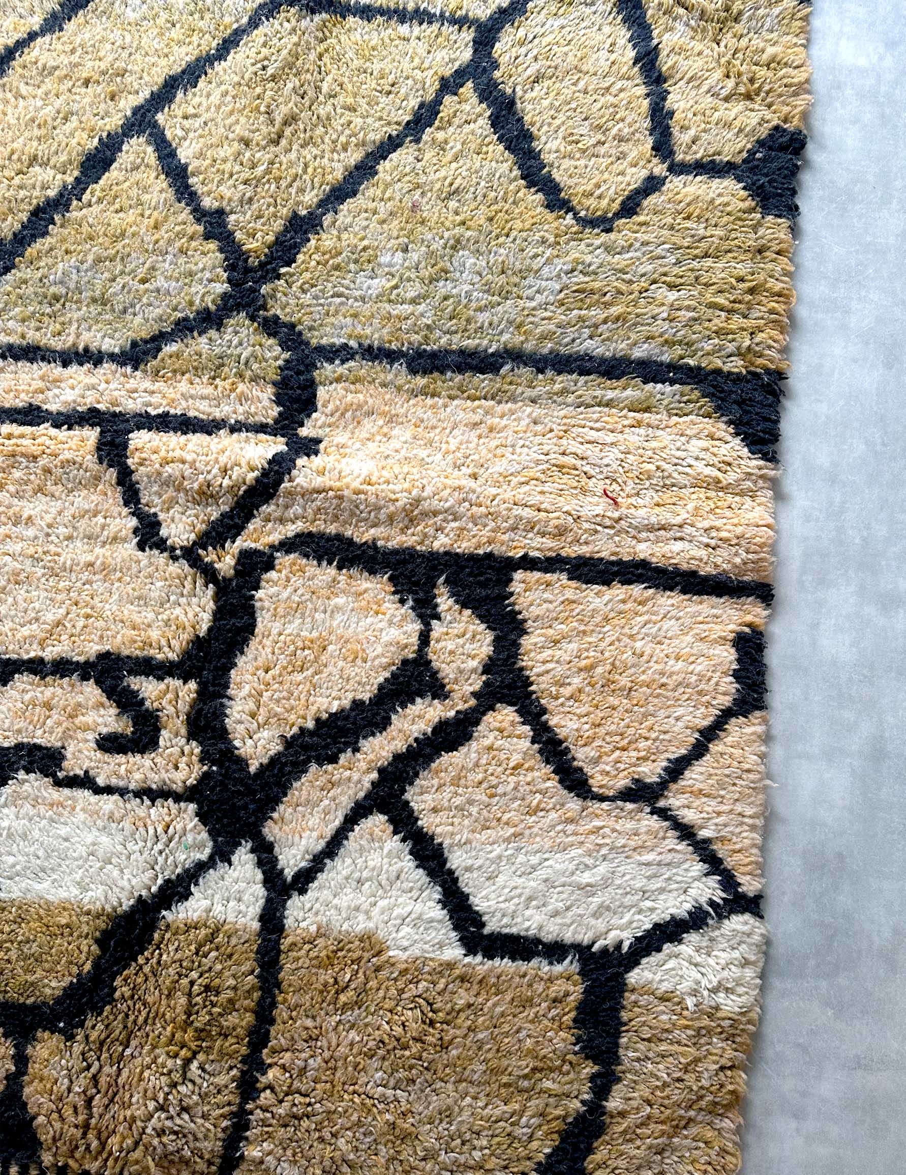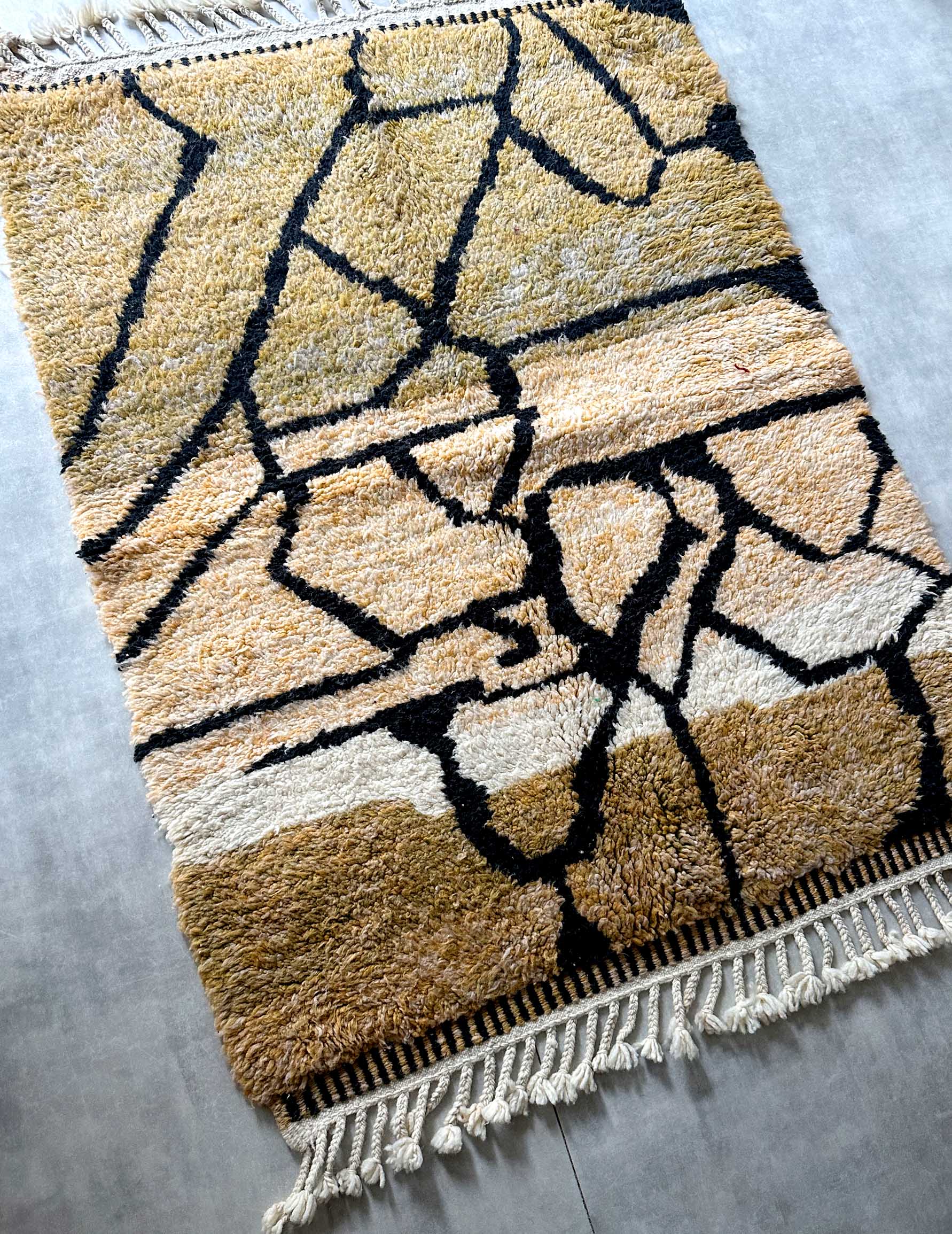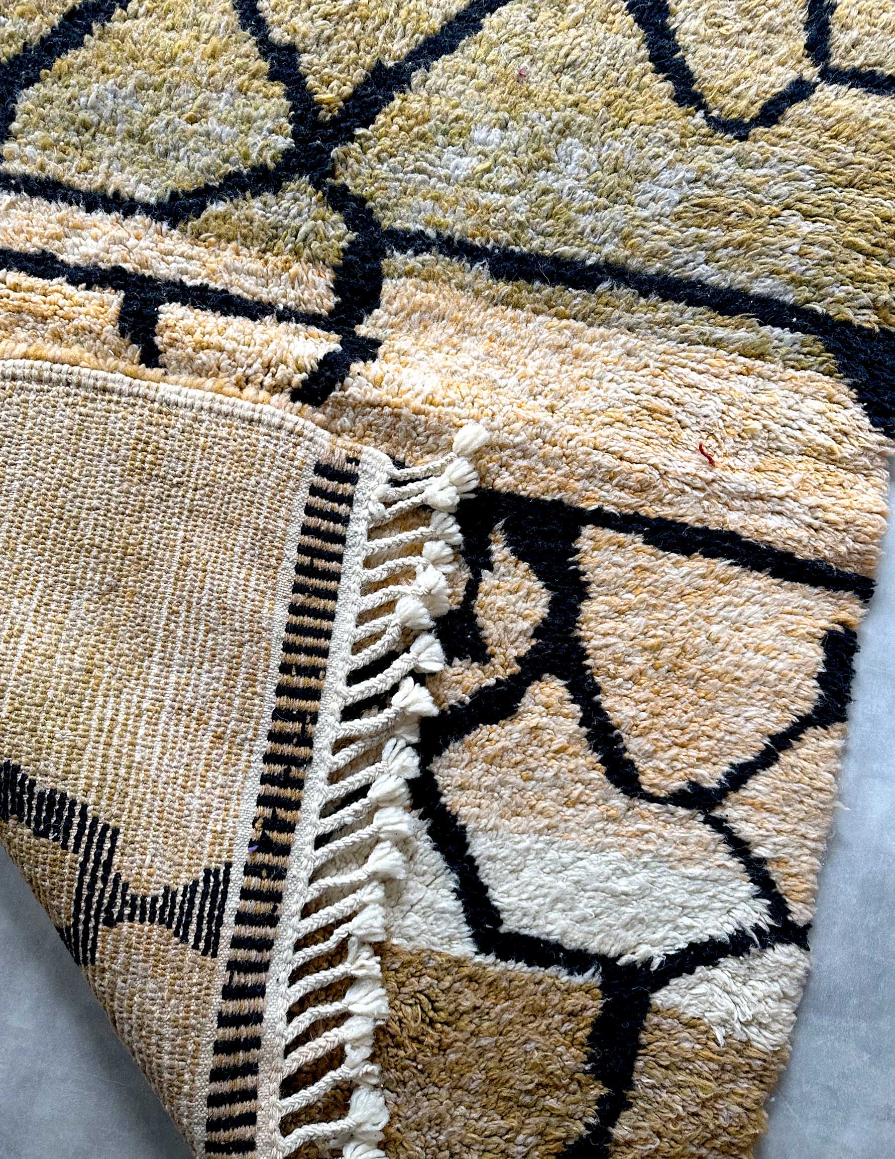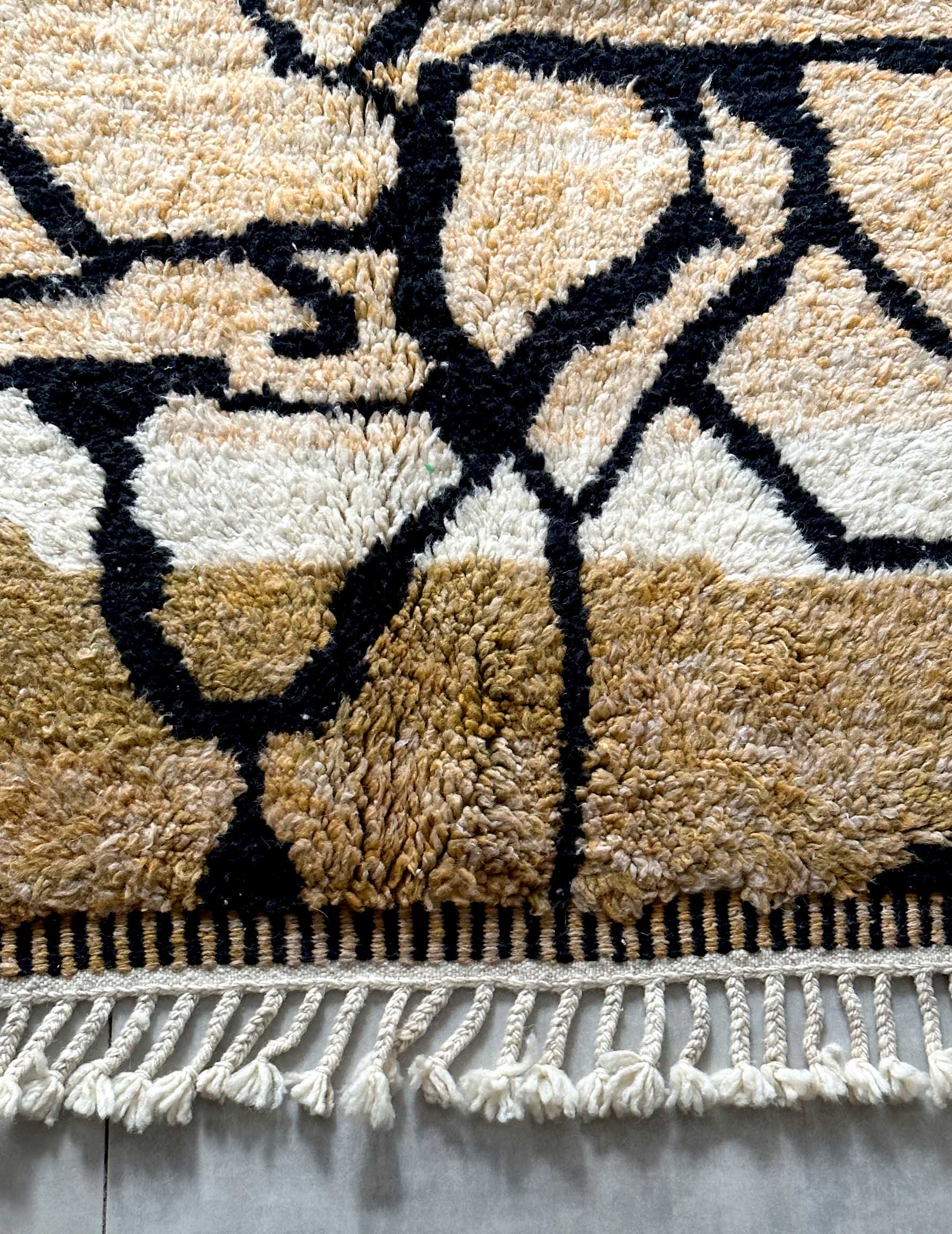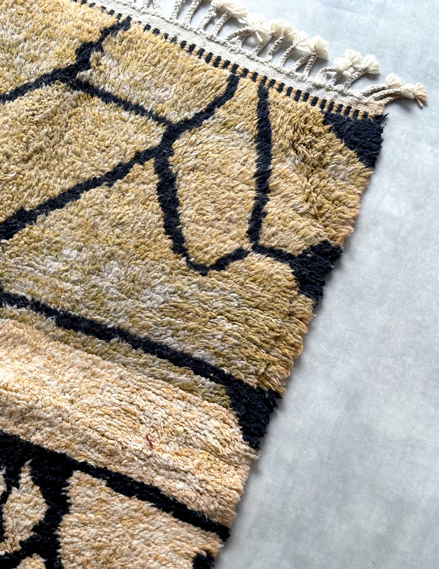 モロッコのアトラス山脈に住むベルベル人女性によって、一目一目しっかりと結びながら織らているハンドメイドのウールラグです。