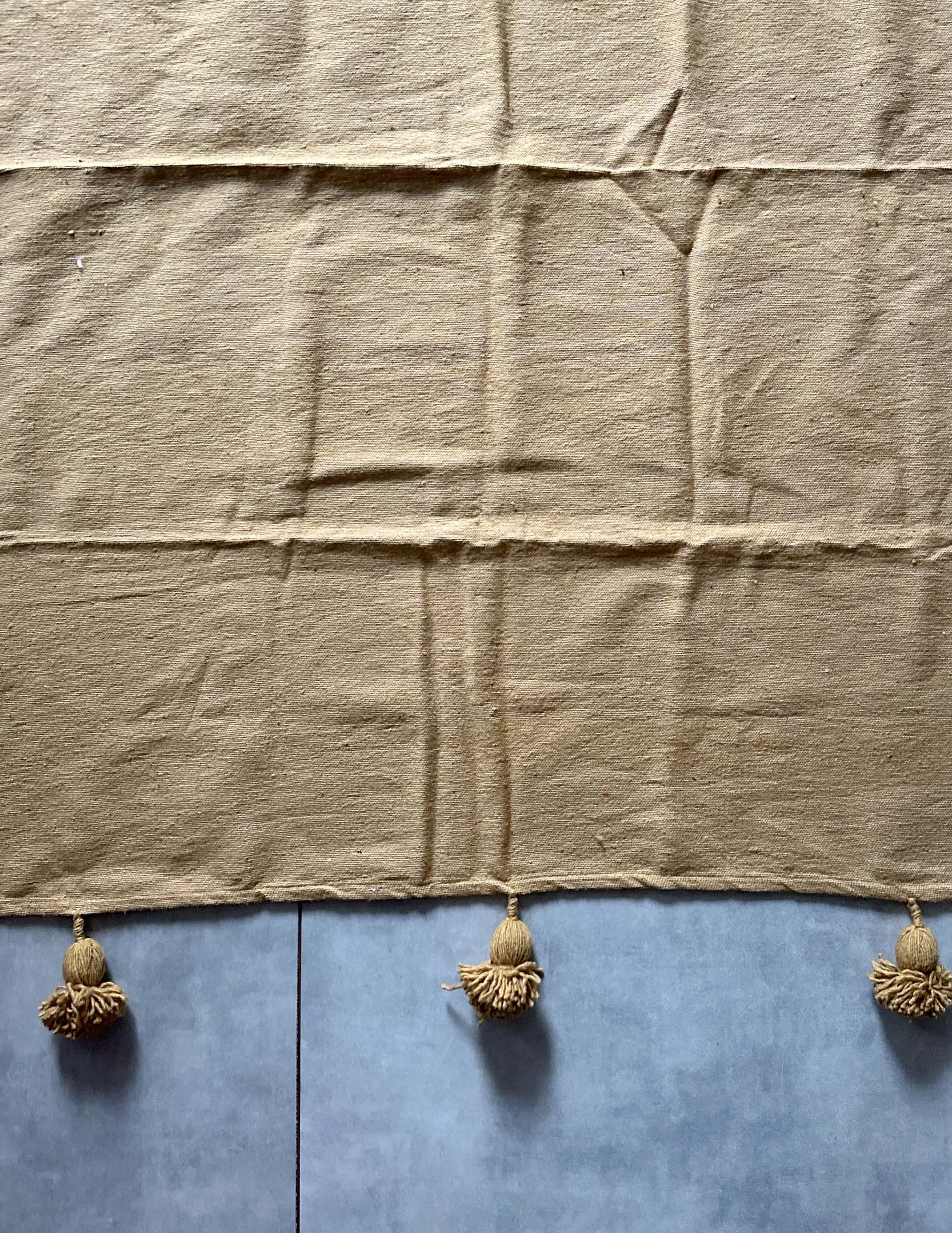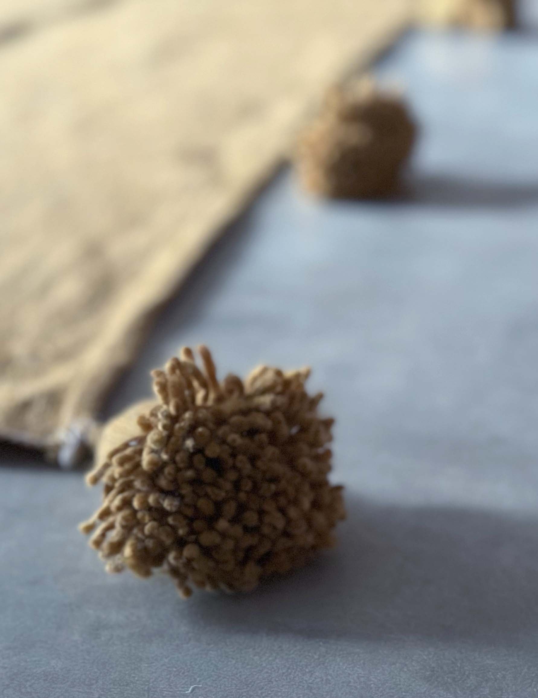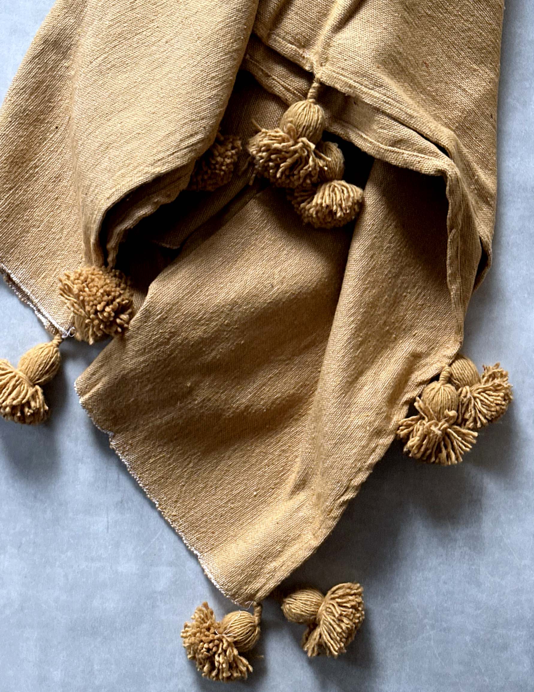 厚みがあり、しっかりとした生地感で、両端には愛らしいポンポンが施されています。