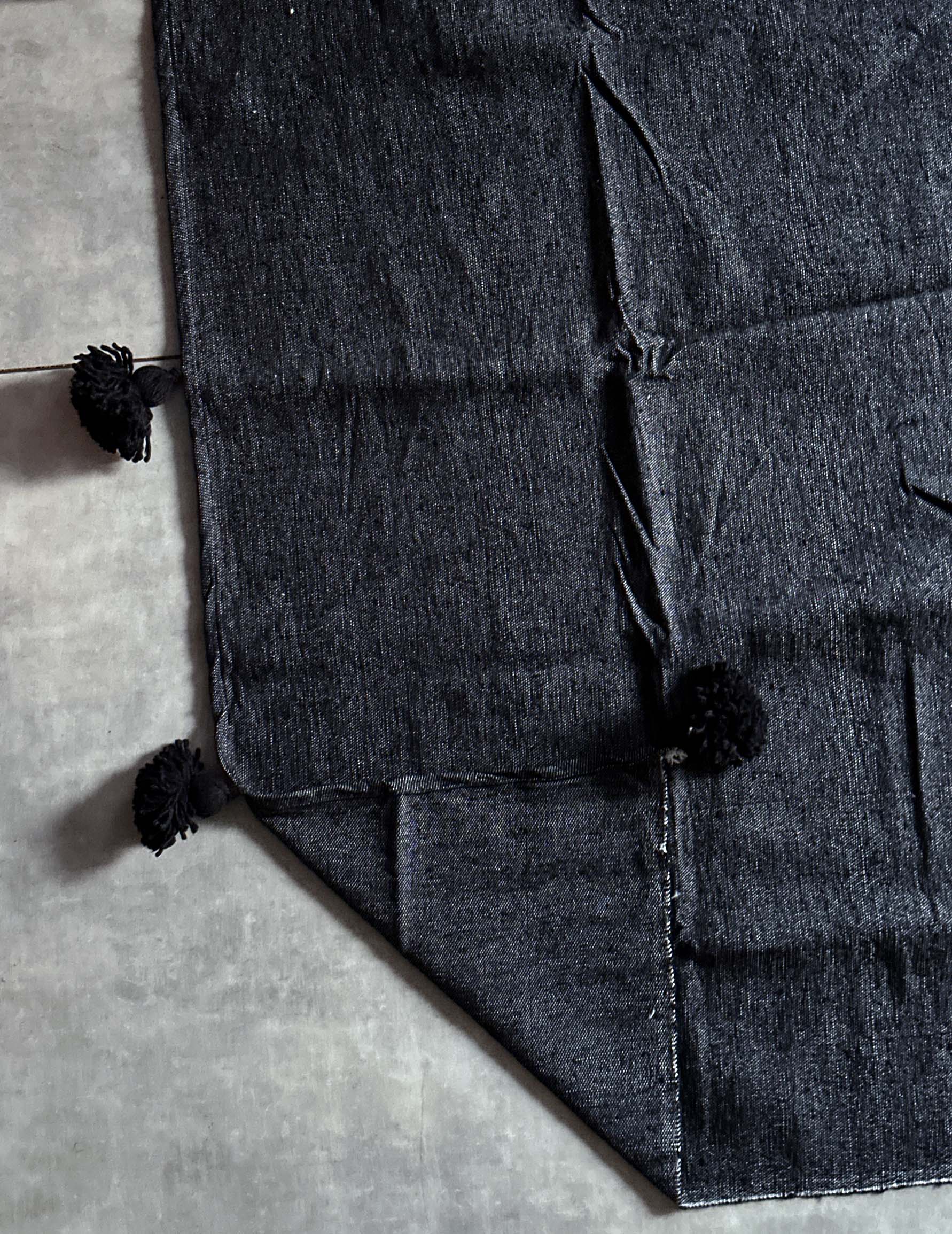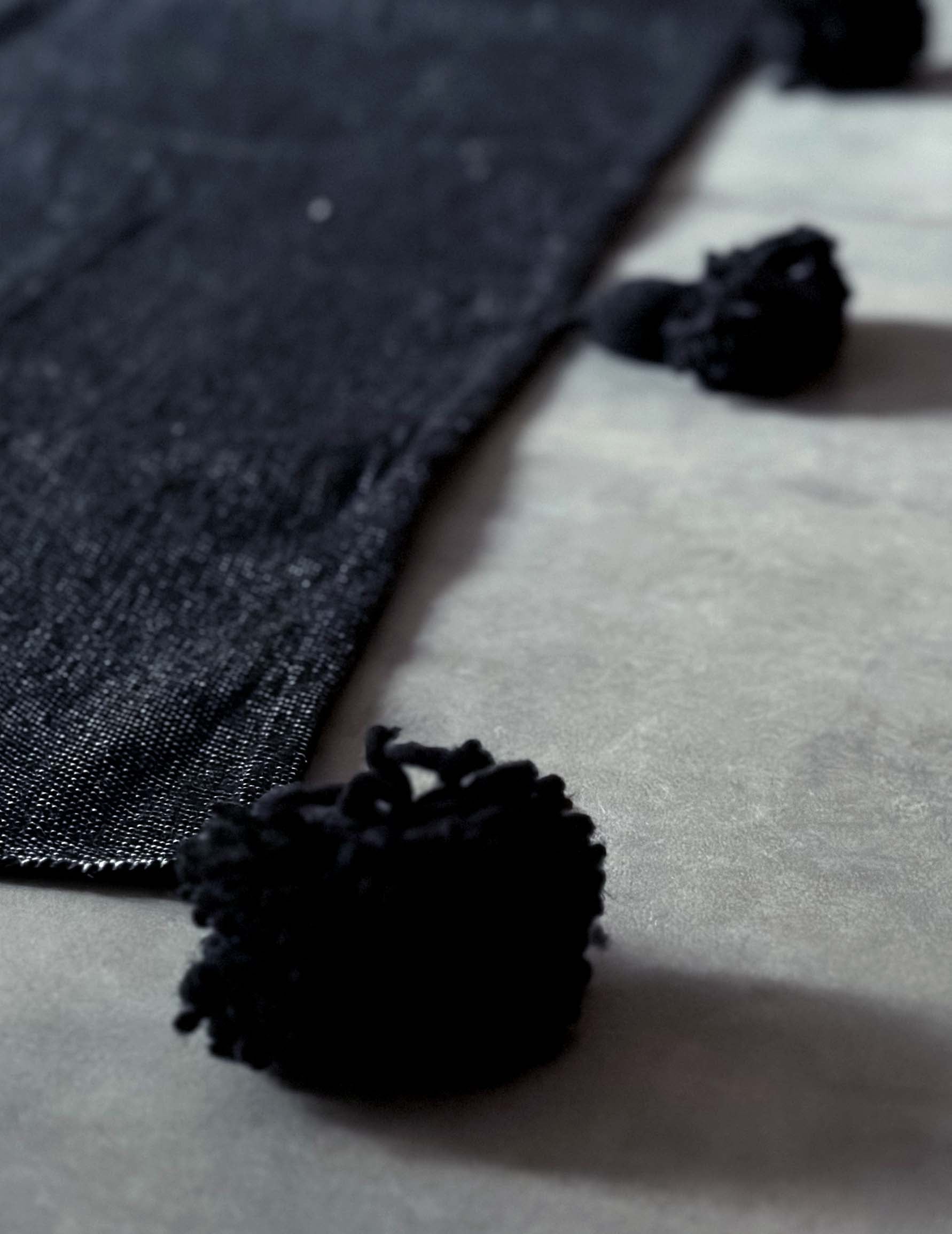 厚みがあり、しっかりとした生地感で、両端には愛らしいポンポンが施されています。