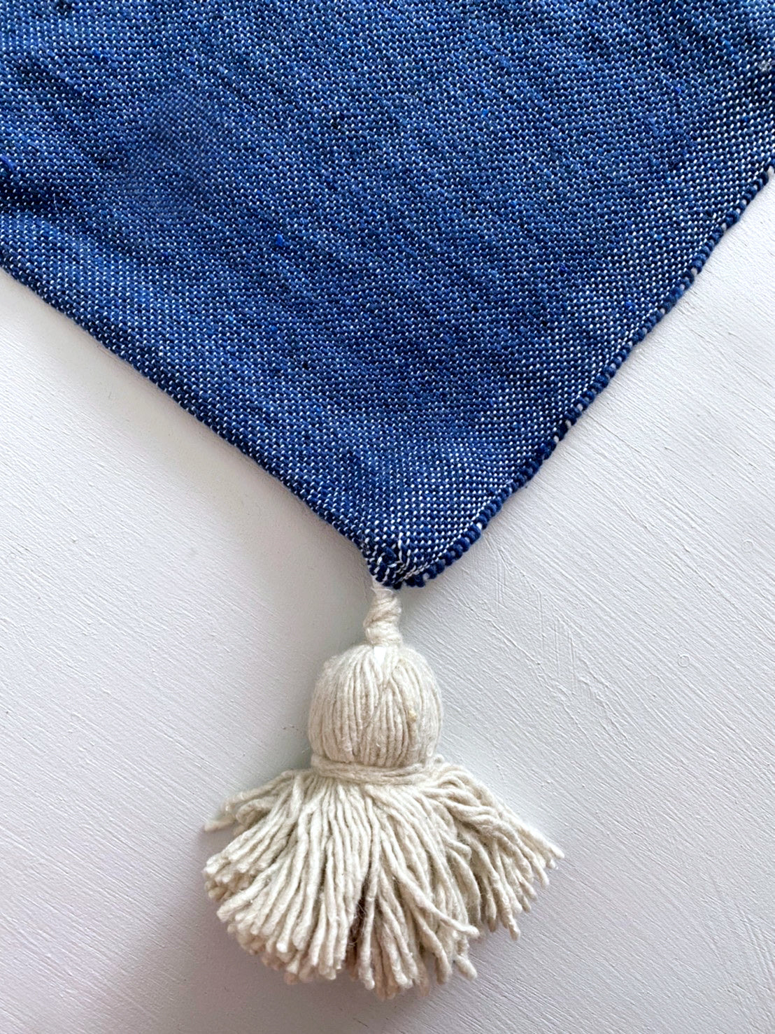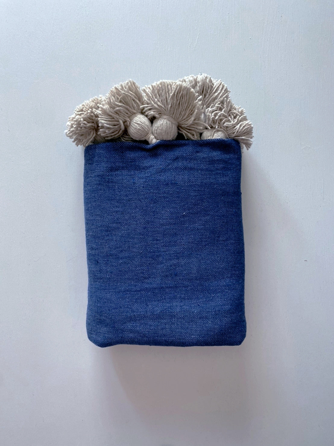 手織りで1枚1枚丁寧に織られた綿100%のブランケット。厚地でしっかりとした生地で、両端にポンポンがついています。