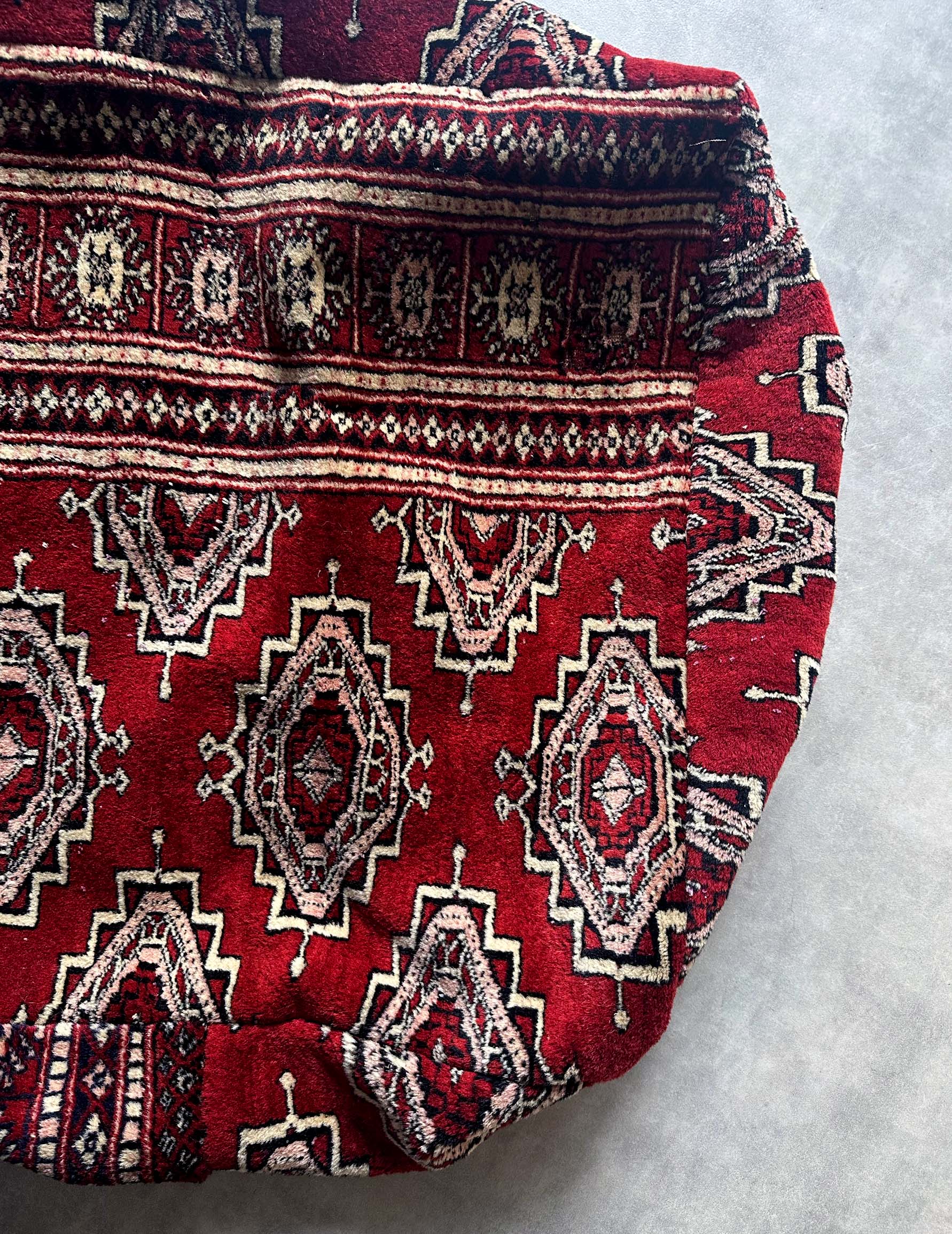 ベルベル人女性によって織られたハンドメイドのキリムラグを使用した、ウール製のプフです。