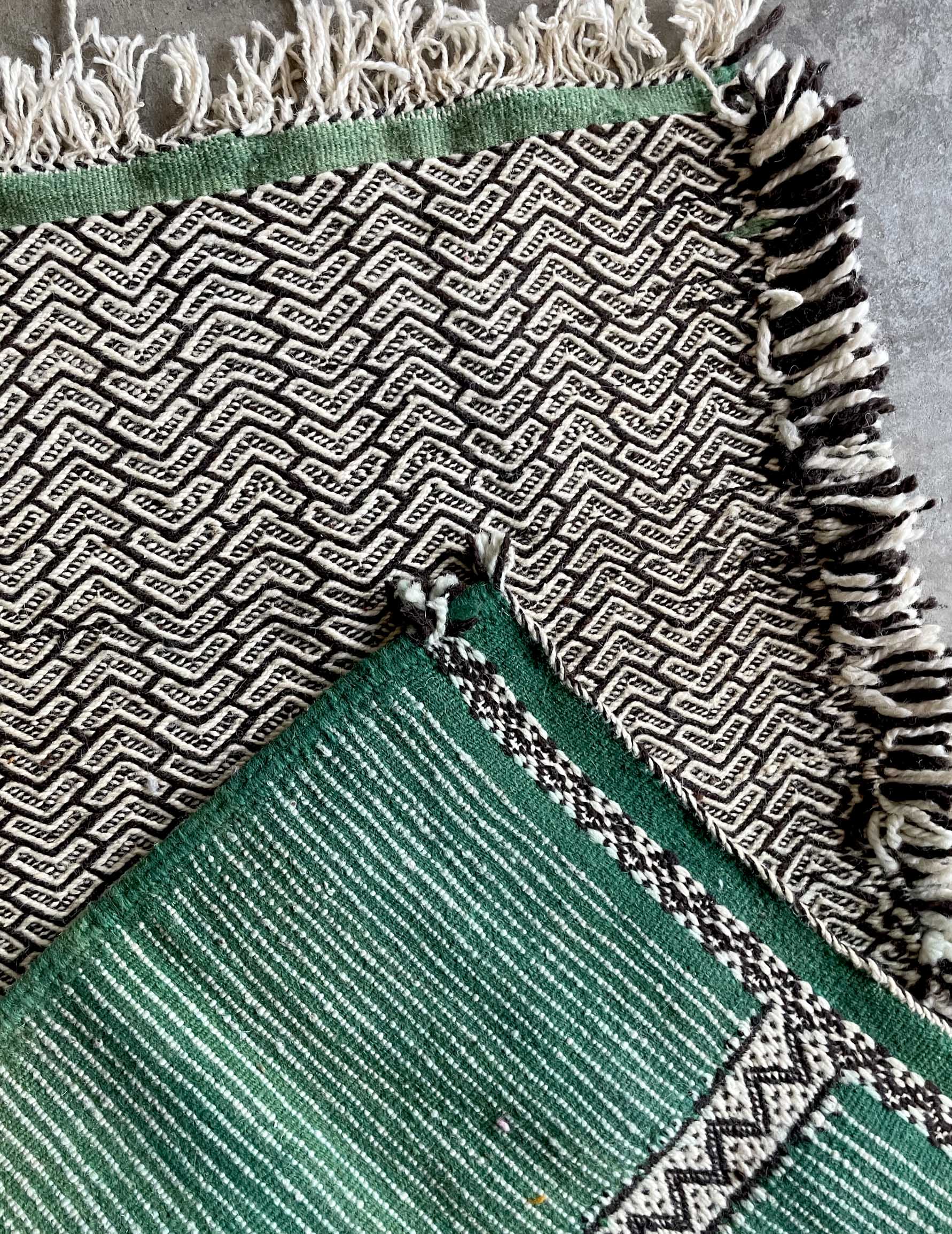 モロッコの南に位置する、サハラのベルベル人女性によりウールで丁寧に編まれた平織タイプのラグ。