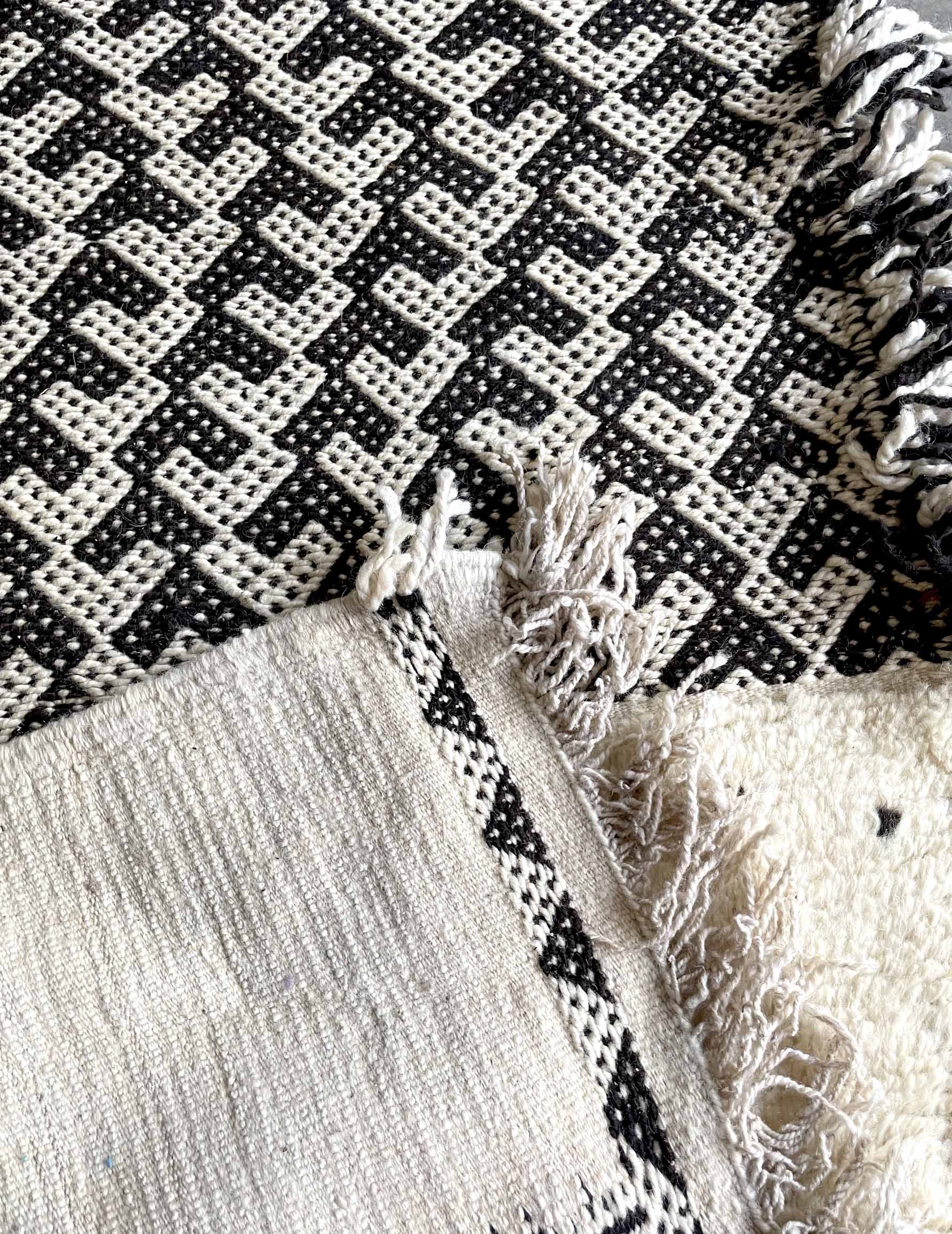 モロッコの南に位置する、サハラのベルベル人女性によりウールで丁寧に編まれた平織タイプのラグ。